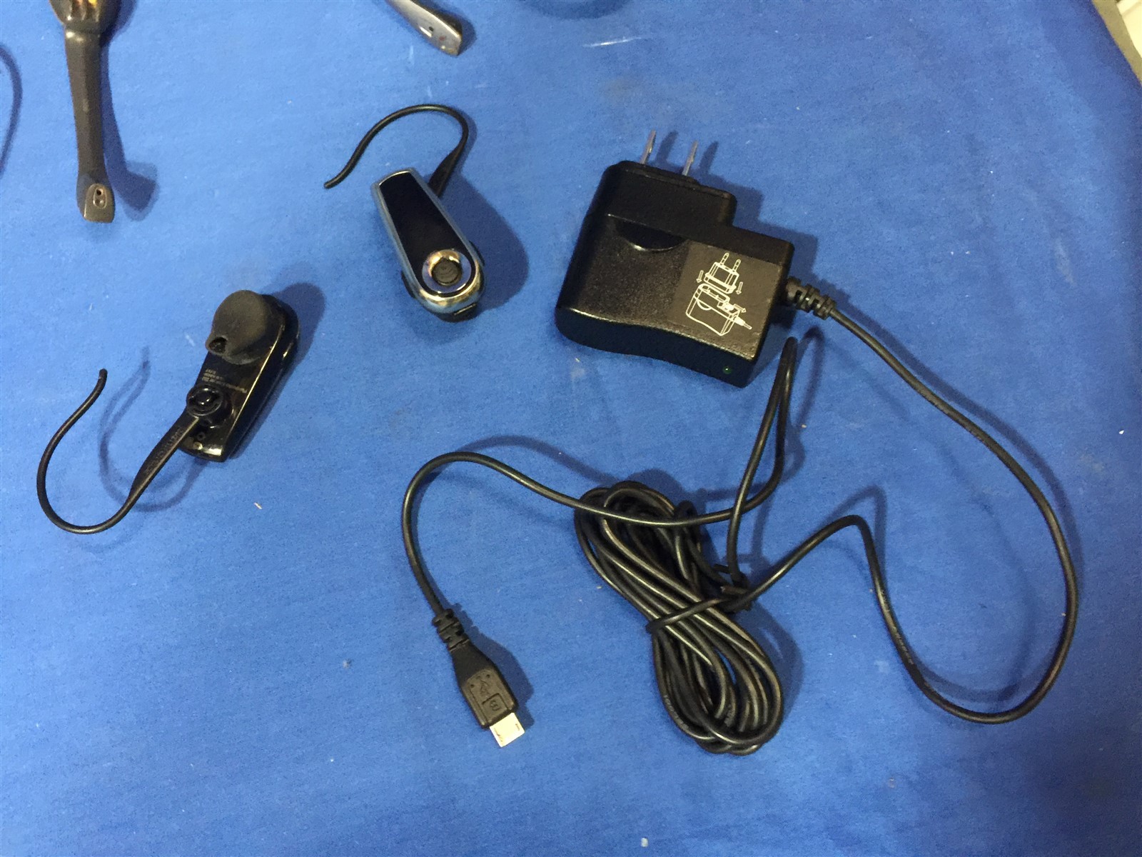 Lot of Plantronics 10 earpieces, charging bases, power cords UNTESTED CS50 232