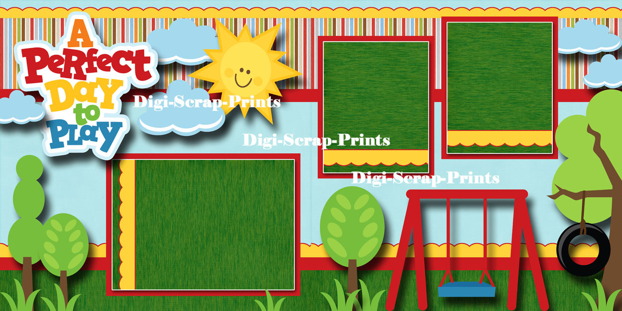 A PERFECT DAY TO PLAY 2 premade scrapbook pages for album layout digiscrap A0043
