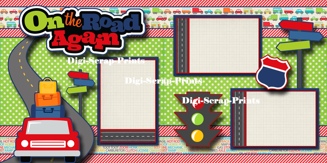 ON THE ROAD AGAIN vacation 2 premade scrapbook pages travel paper DIGISCRAP