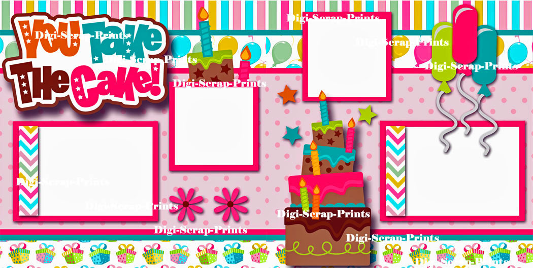BIRTHDAY GIRL 2 pre-made scrapbook pages paper piecing layout digiscrap A0100