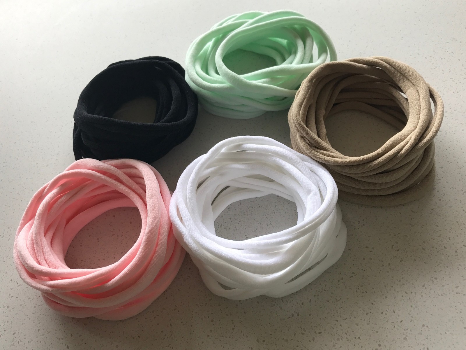 50 Mix THIN Super Soft Skinny Nylon Elastic Baby Headbands 5 Colour Mix Variety