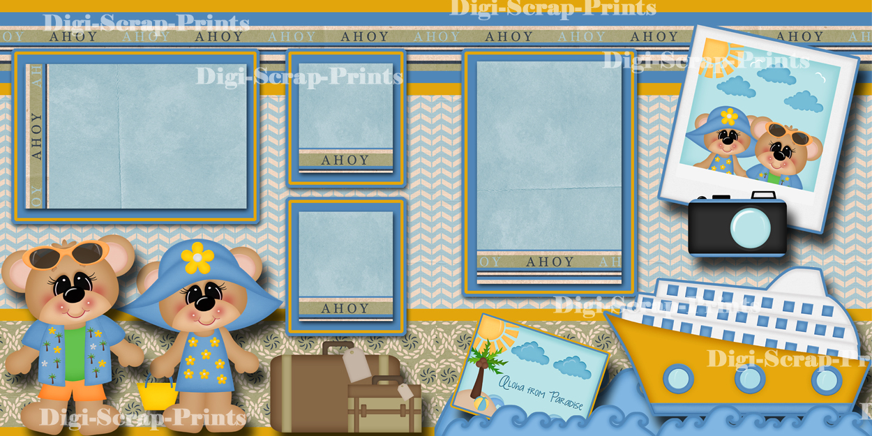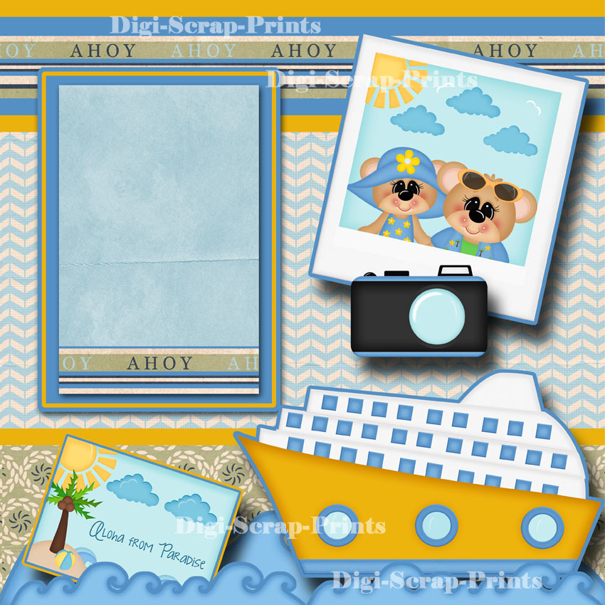 PARADISE CRUISE SHIP travel vacation 2 premade scrapbook pages paper DIGISCRAP