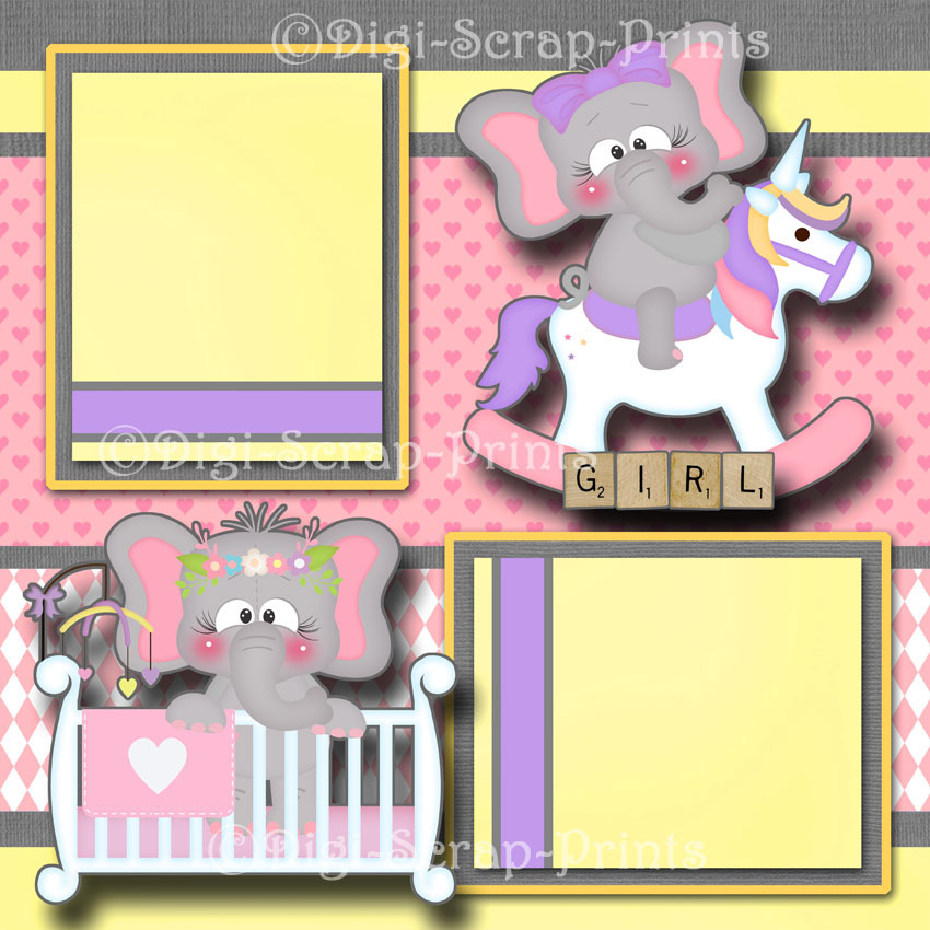 BABY GIRL 2 pre-made scrapbook pages for album layout paper DIGISCRAP A0055