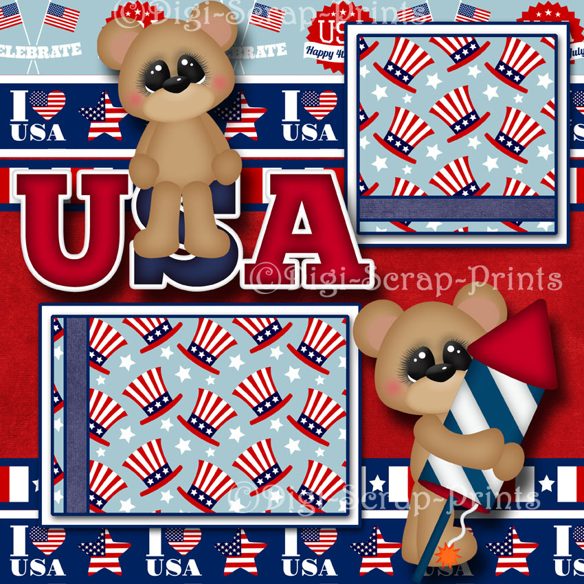 USA JULY 4TH 2 premade scrapbook pages paper piecing layout album DIGISCRAP