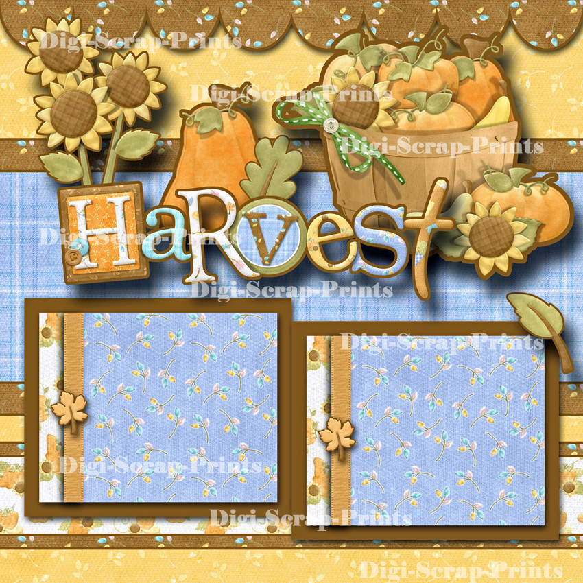 HARVEST FALL 2 premade scrapbook pages paper piecing layout BY DIGISCRAP