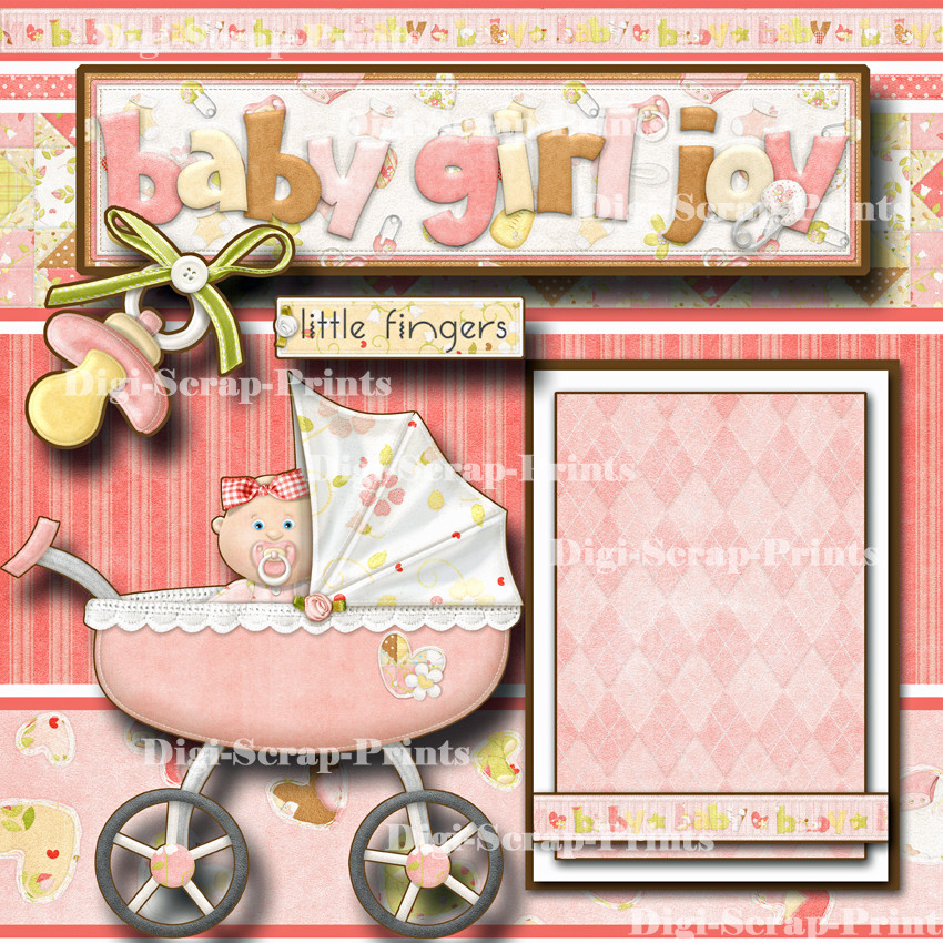 BABY GIRL JOY 2 pre-made scrapbook pages paper piecing layout DIGISCRAP A0058