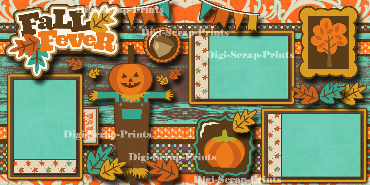 FALL FEVER 2 premade scrapbooking pages paper piecing layout 4 album DIGISCRAP
