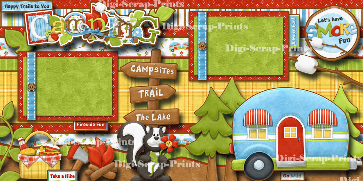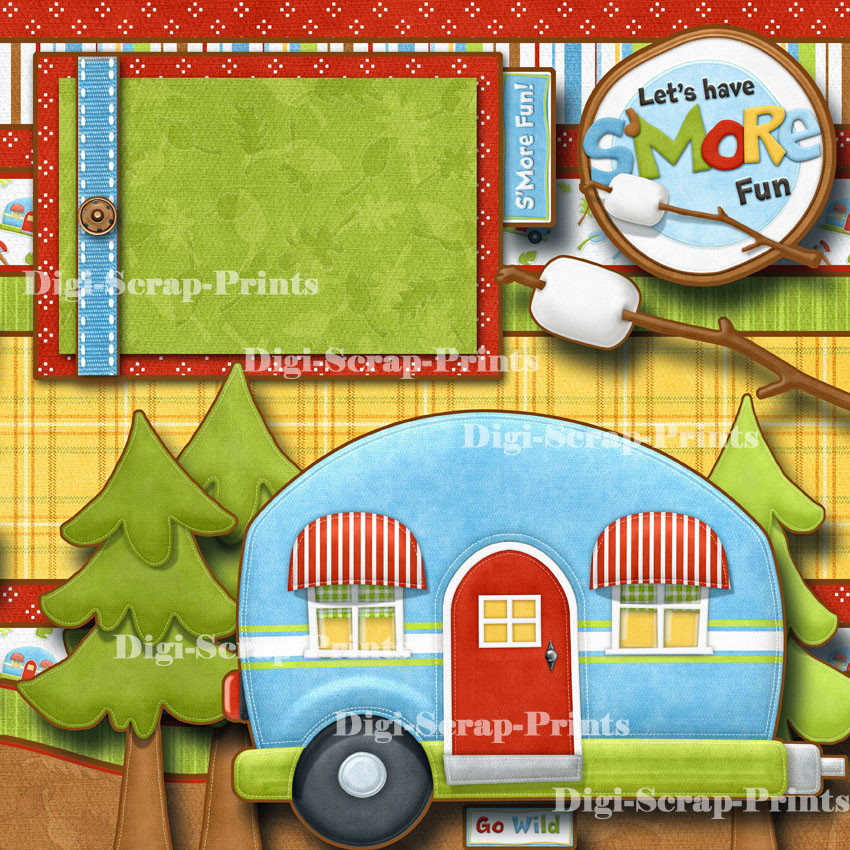 CAMPING camper rv 2 premade scrapbook pages paper piecing layout DIGISCRAP A0131