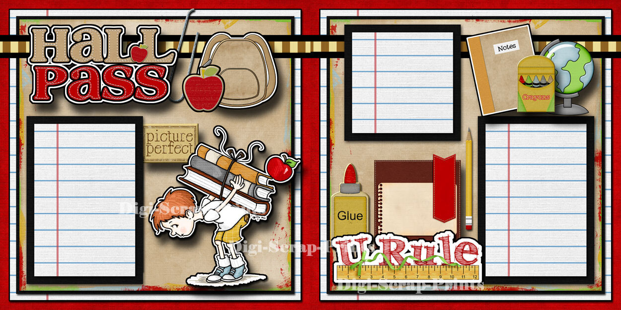 HALL PASS BOY SCHOOL 2 Premade Scrapbook Pages paper layout DIGISCRAP A0244