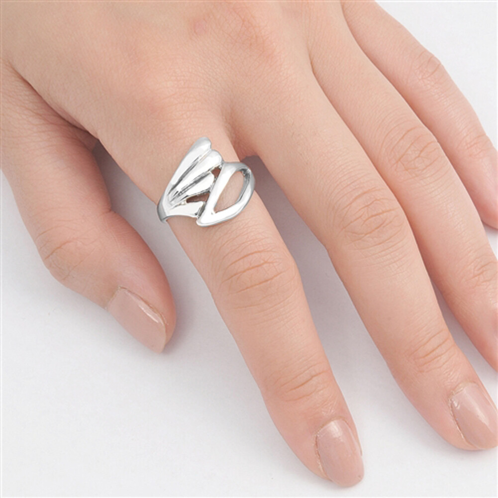 High Polish Wave Open Shell Ring New .925 Sterling Silver Band Sizes 6-10