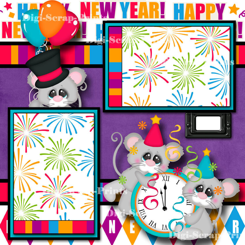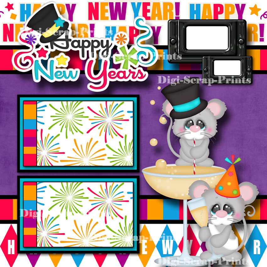 HAPPY NEW YEARS 2 premade scrapbook pages paper piecing printed layout DIGISCRAP