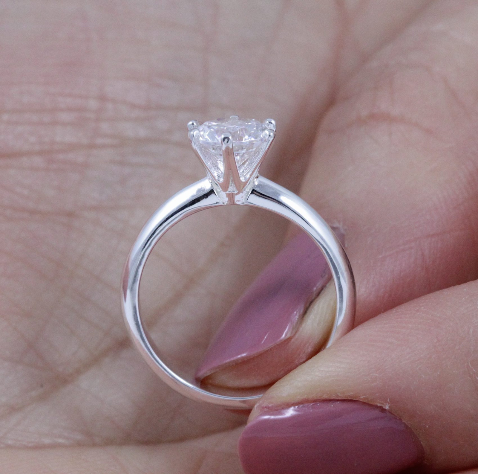 как выглядит 1ct .925 Sterling Silver Round CZ Solitaire Engagement Ring Band Sz 1.5-15 SA032 фото