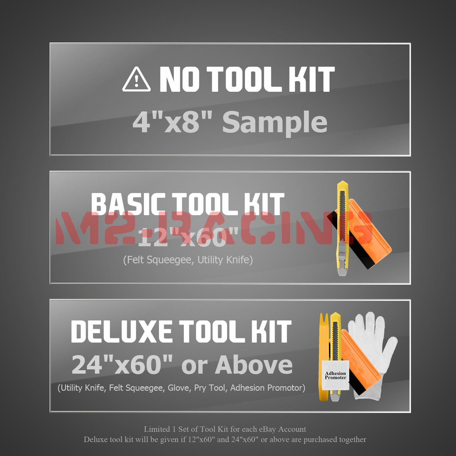 Deluxe Wrapping Tool Kit: Squeegee / Knife / Glove / Pry Tool / Adhesion Promoter