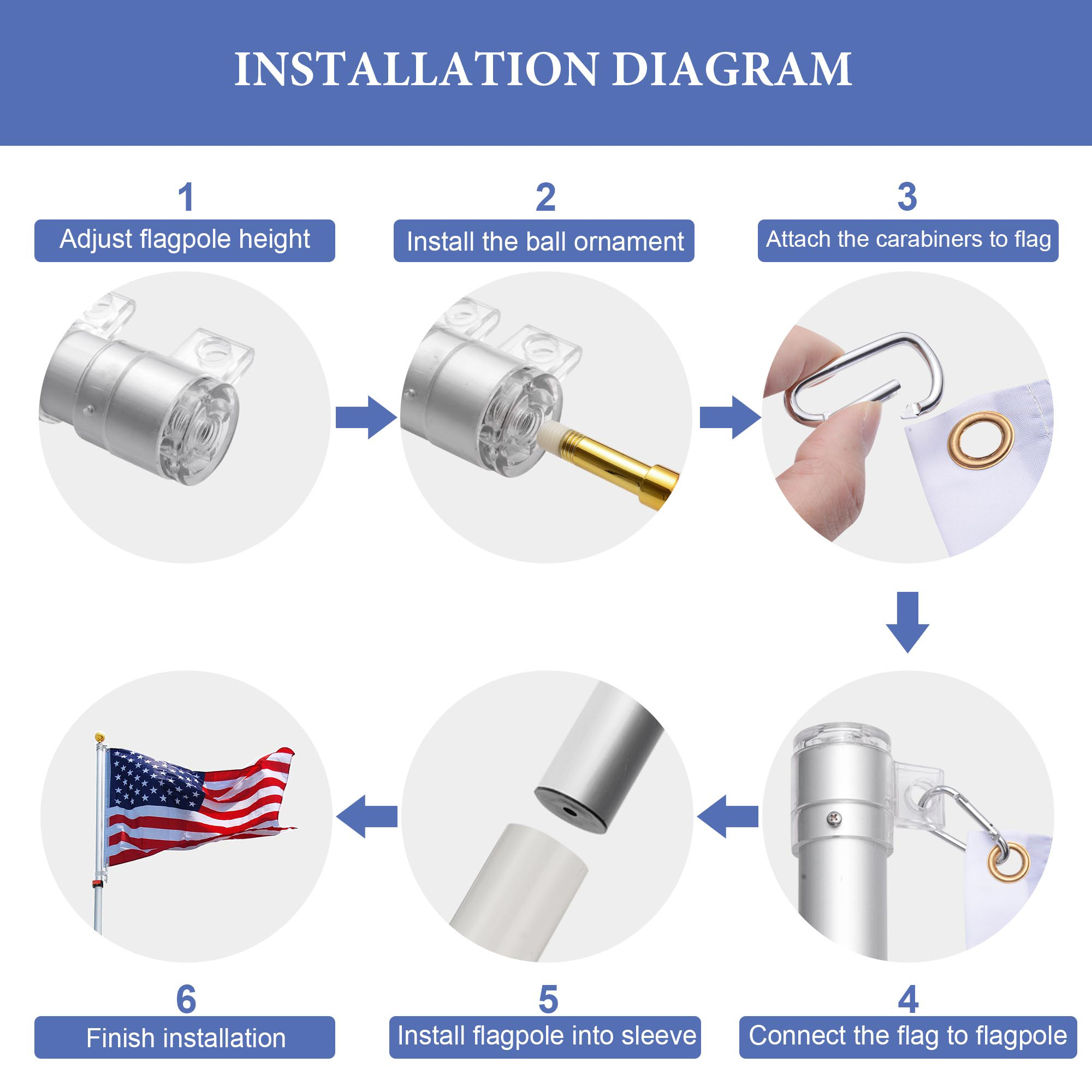как выглядит 20 25 FT Flag Pole Aluminum Flagpole Kit 3x5 American US Flag Fly Outdoor фото