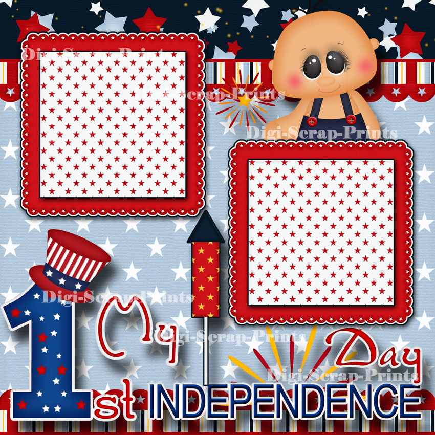 1ST JULY 4TH 2 premade scrapbook pages paper piecing BABY DIGISCRAP A0037