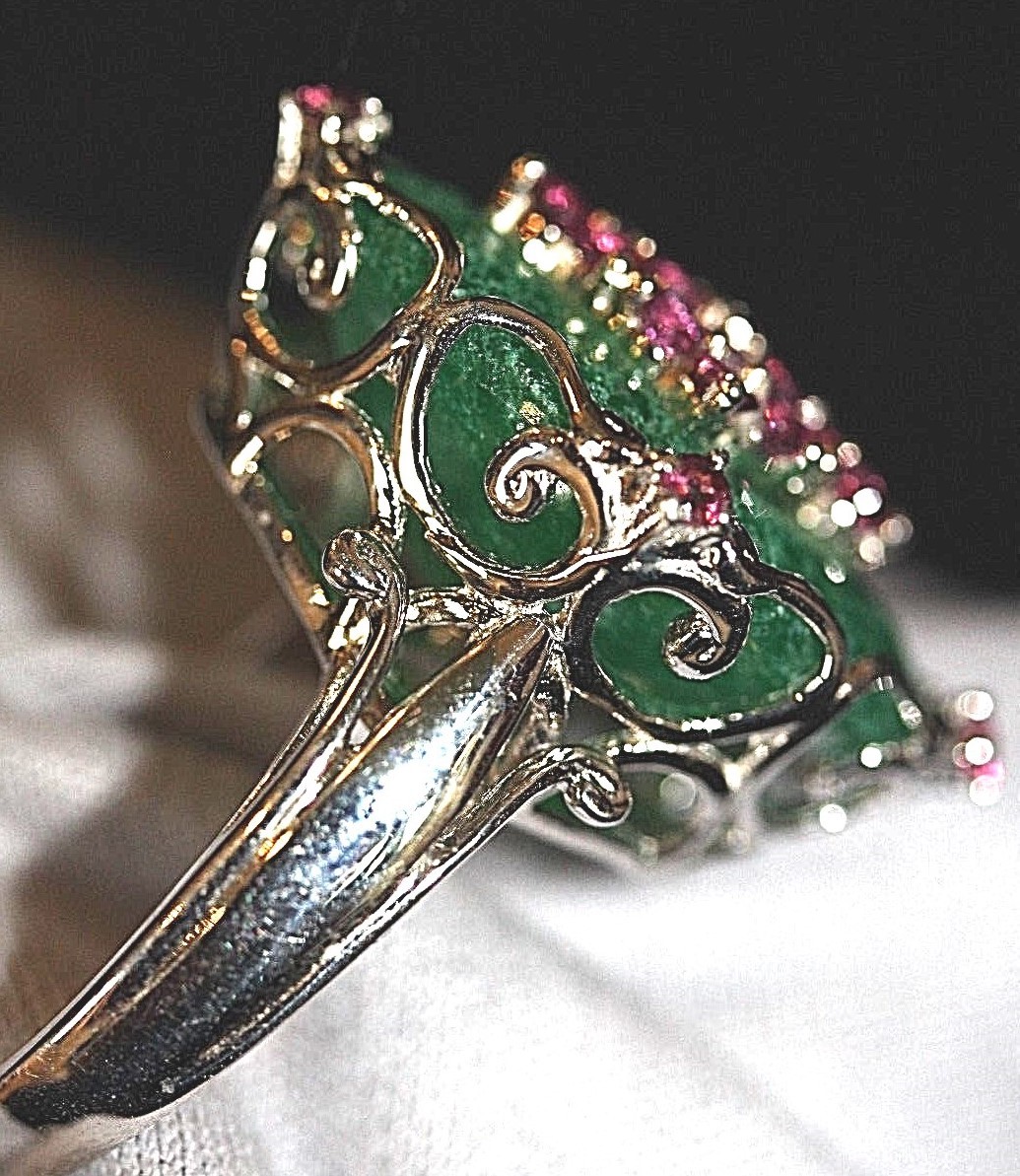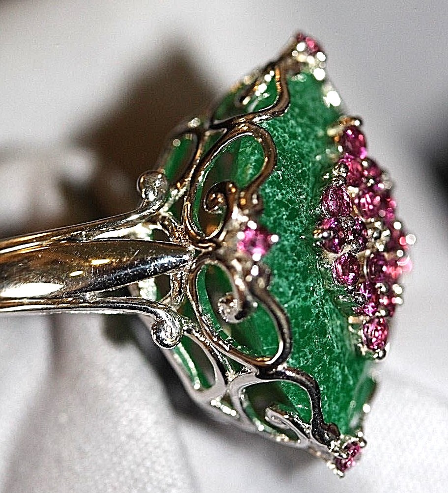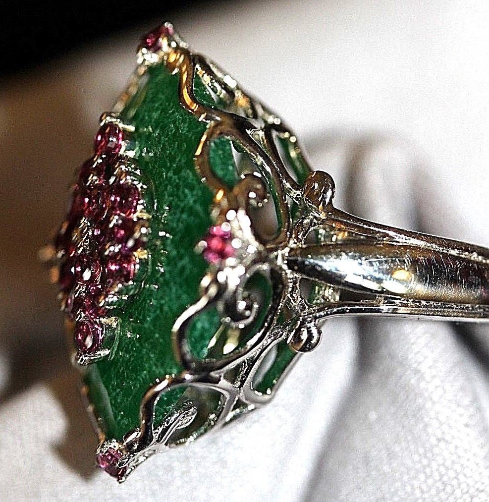 как выглядит Cocktail Sterling Silver Ring 23mm x 18mm Green Stone 20 purple stones Size 7 фото
