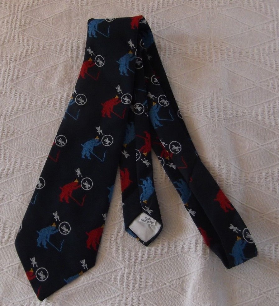 National Shirt Shops Vintage Mens Navy Blue Neck Tie Frogs Clown Hoops Whip