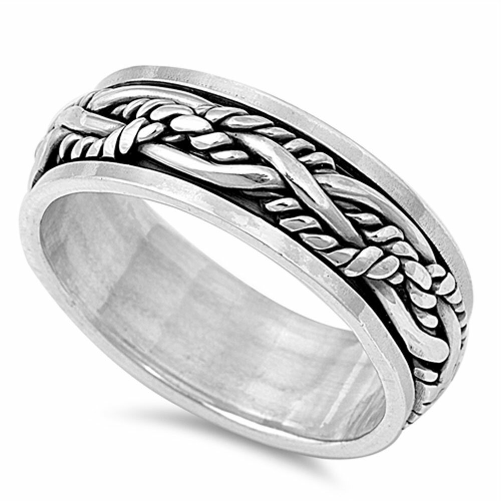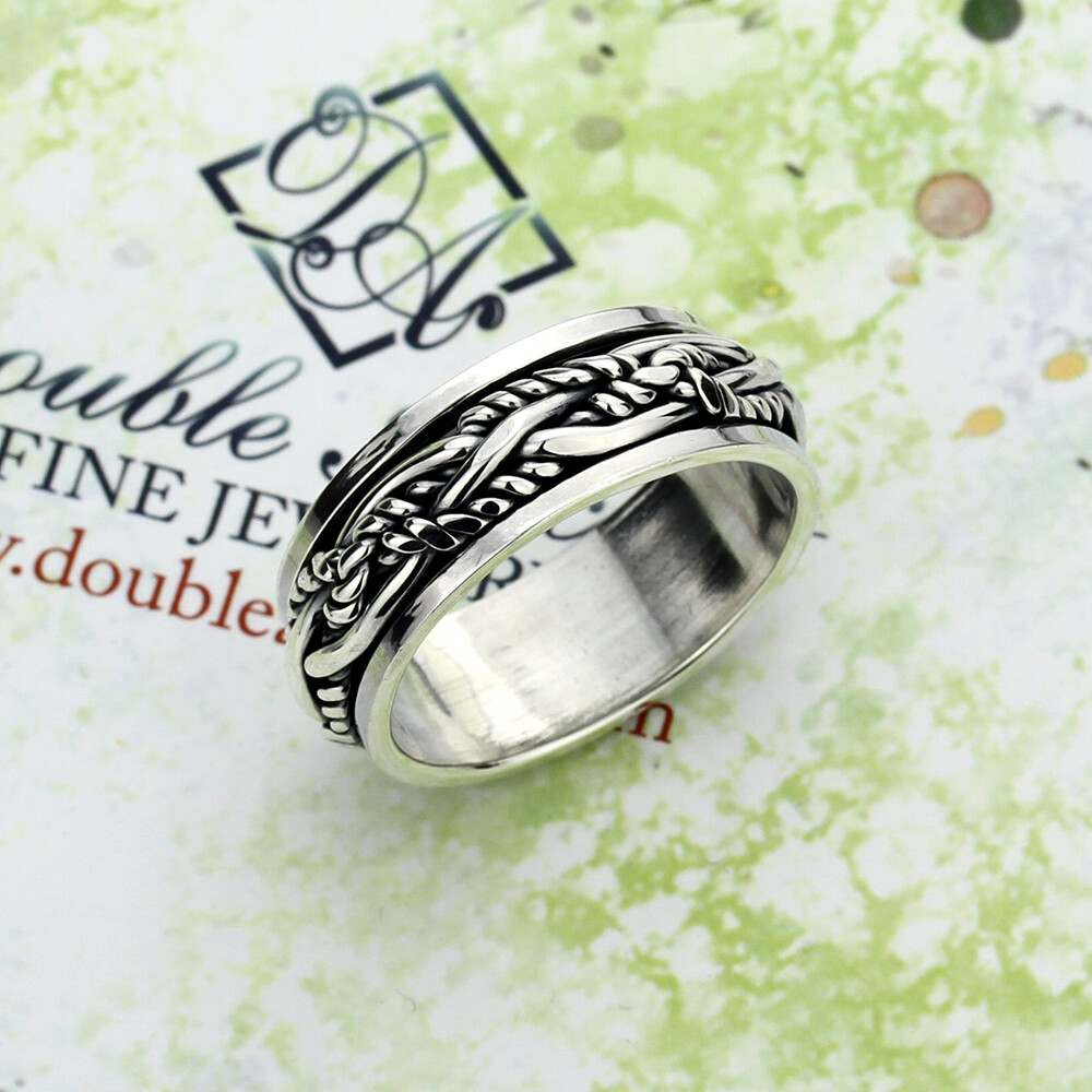 как выглядит 925 Sterling Silver Oxidize Finish Braided Rope Design Spinner Ring фото
