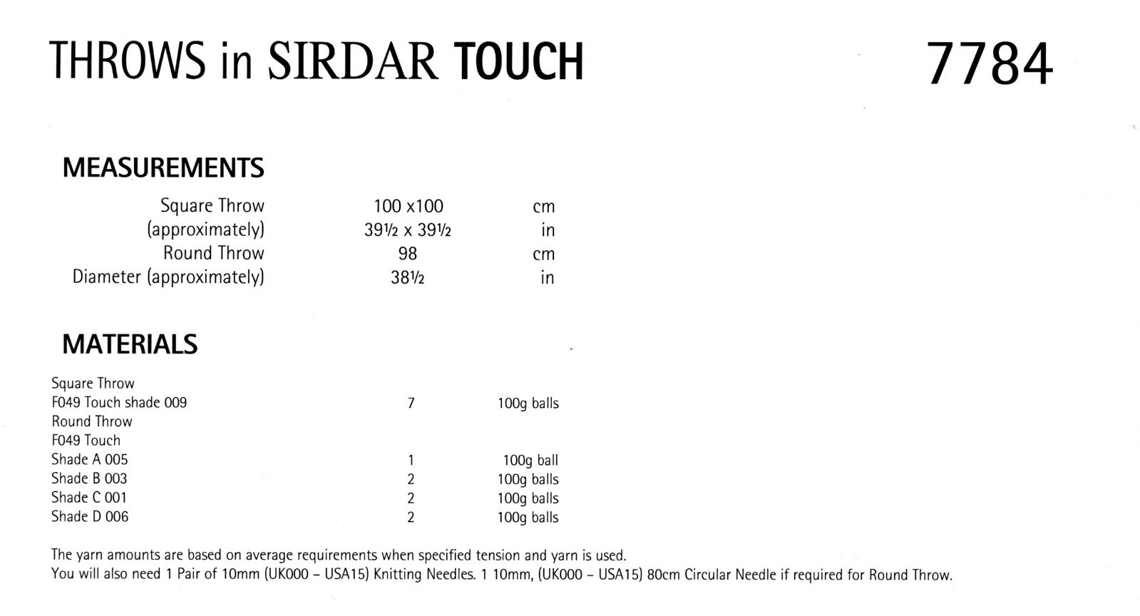 Sirdar Touch Knitting Pattern 7784 - Throws - Square Round Quick Easy Knit