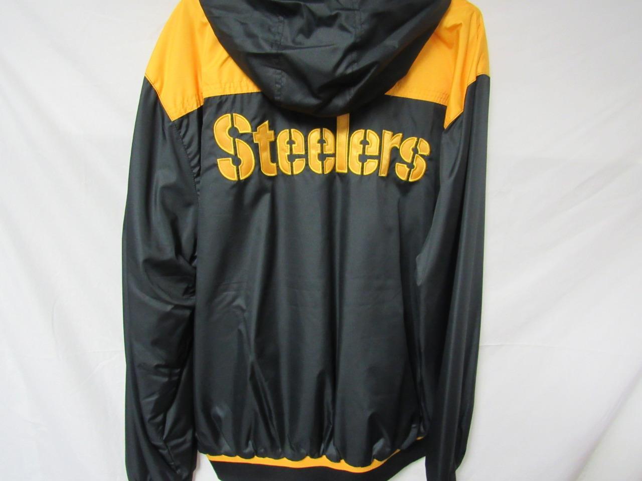 Pittsburgh Steelers Mens L Full Zip Embroidered Hooded Reversible Jacket B1 135