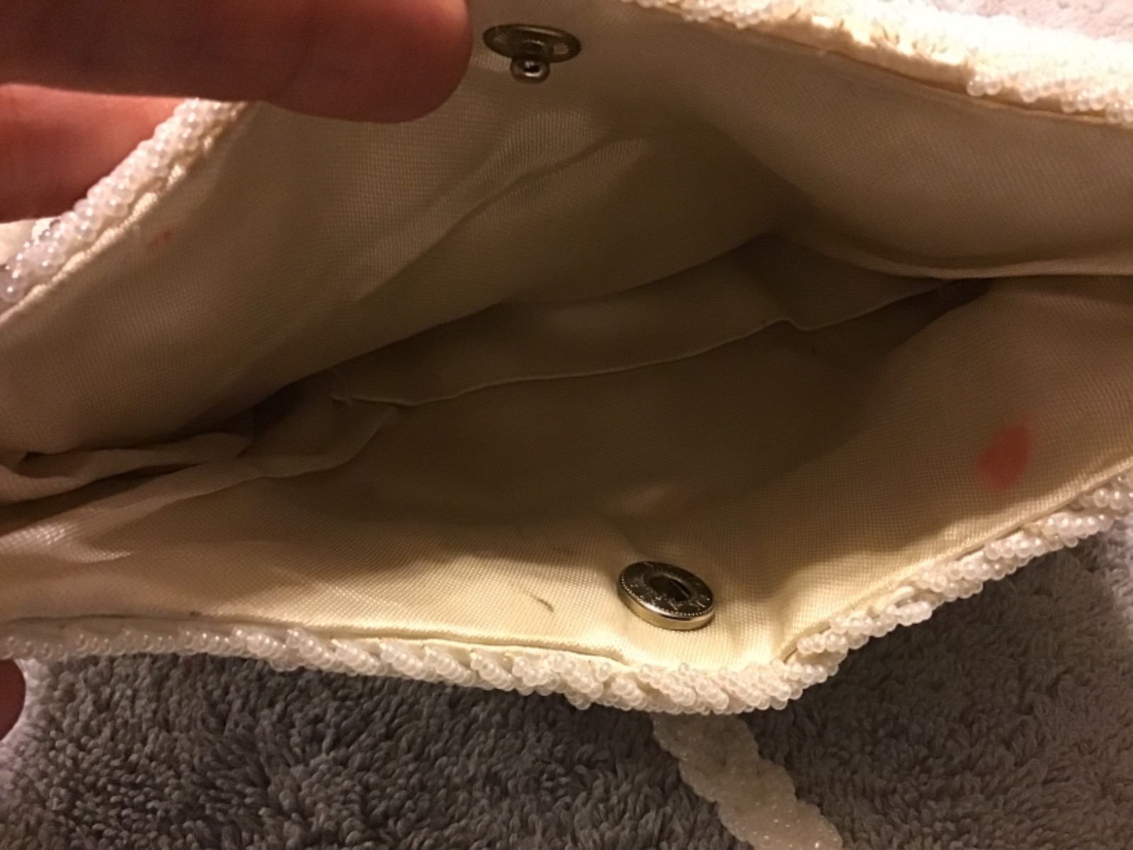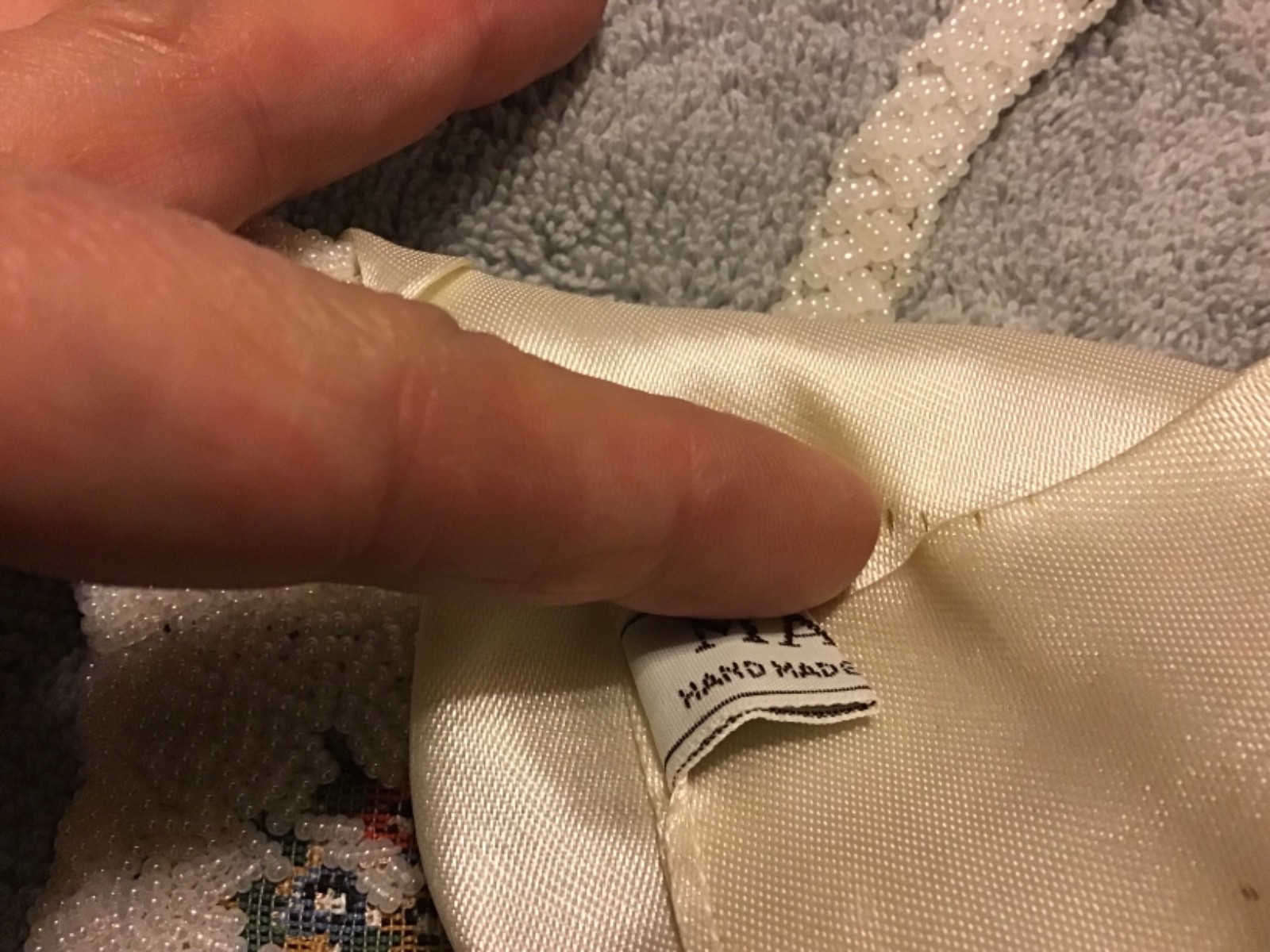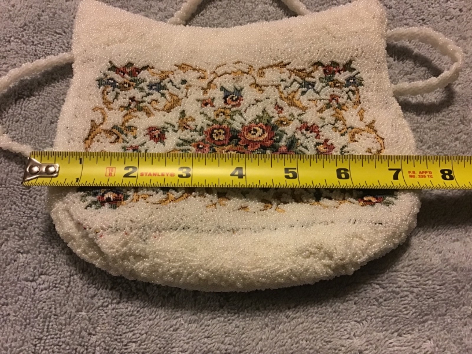 как выглядит 6 Vintage MAGID Pearl White Beaded Handbag with Kneedlepoint Flower Design фото