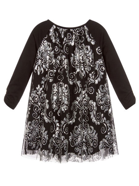 как выглядит Biscotti NWT Black and Silver Sequin Party Dress Girls Sizes 4-14 Long Sleeve фото