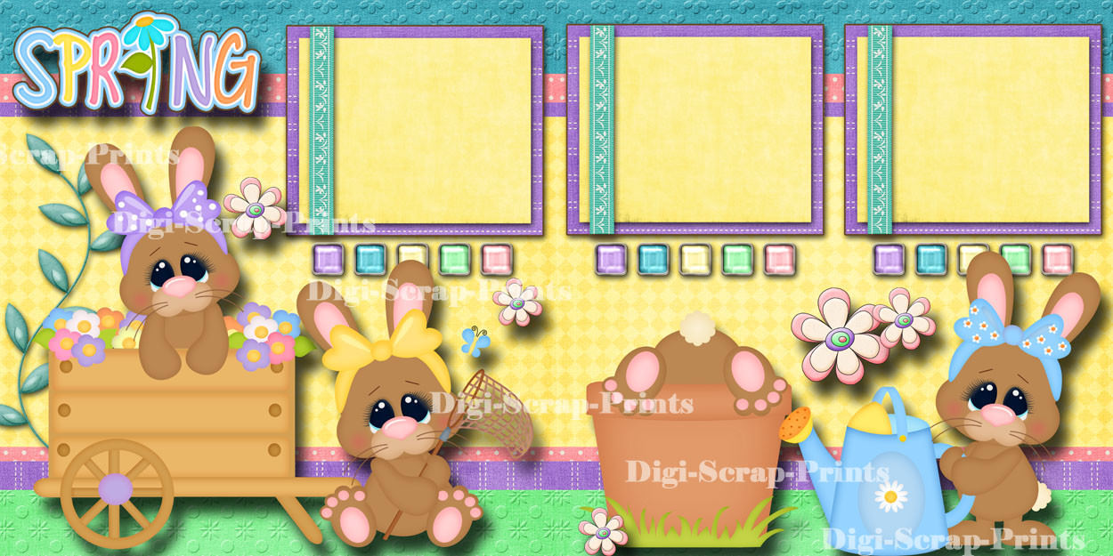 SPRING 2 premade scrapbook pages paper piecing layout printed 12x12 DIGISCRAP