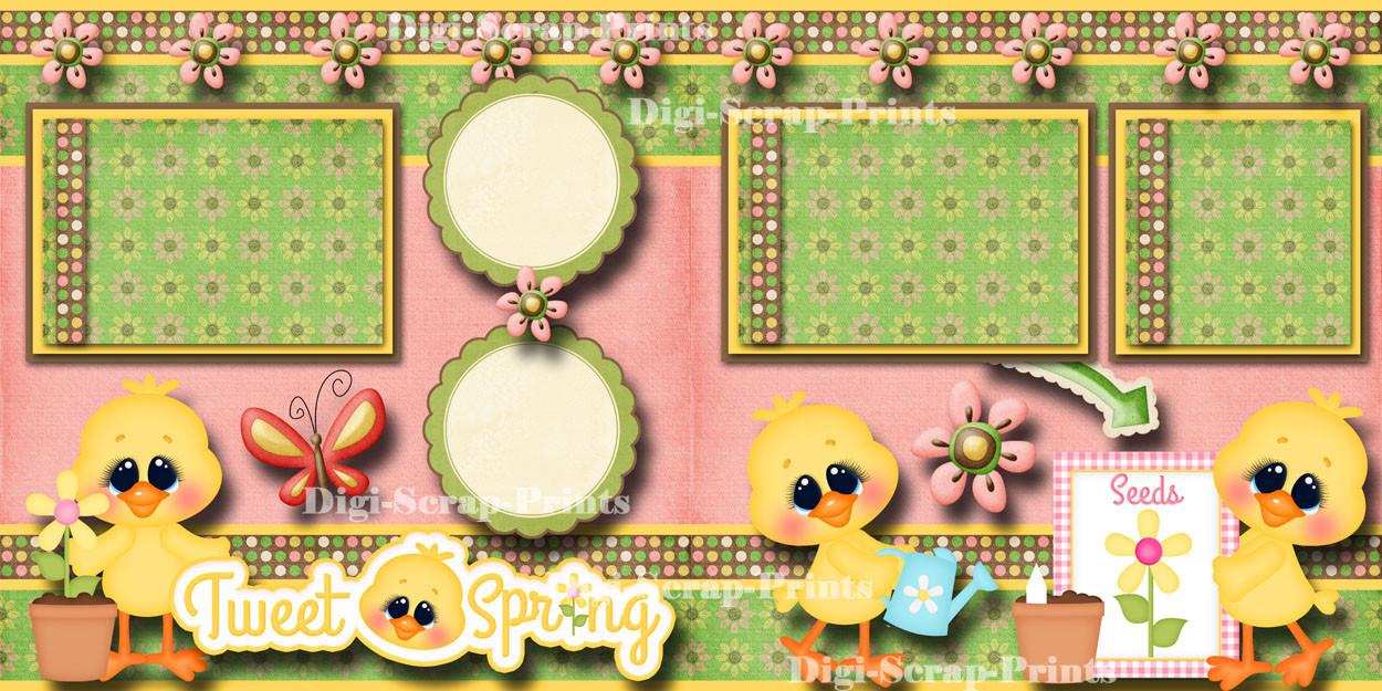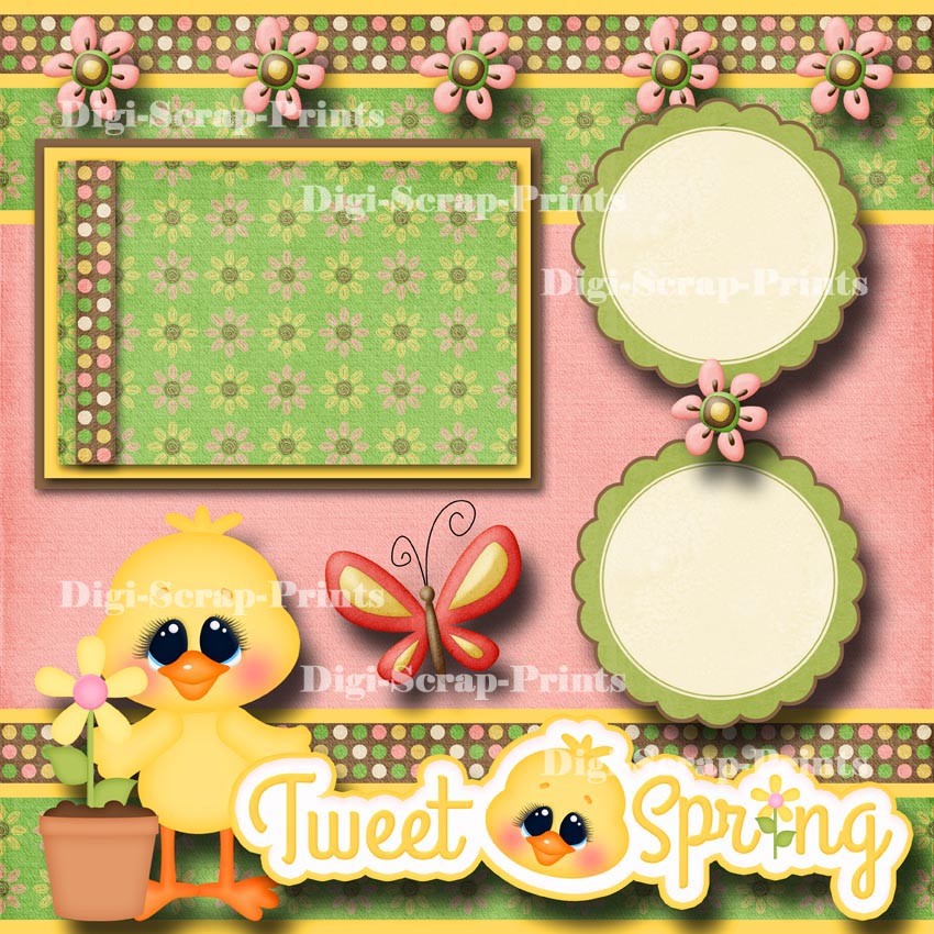 TWEET SPRING 2 premade scrapbooking pages paper piecing layout BY DIGISCRAP