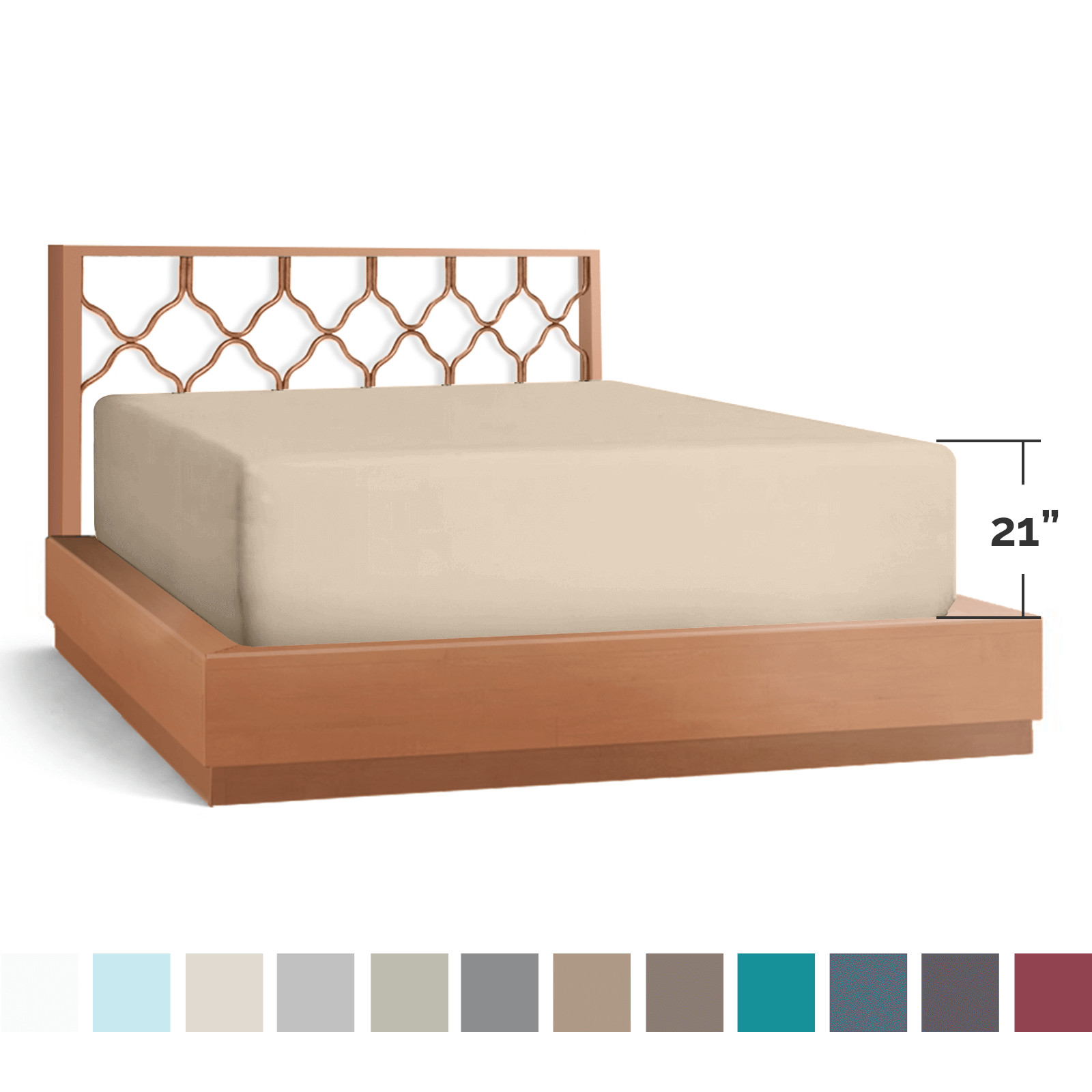 21 Extra Deep Pocket Ultra Soft Fitted Sheet with Corner Straps, Cal King-Cream