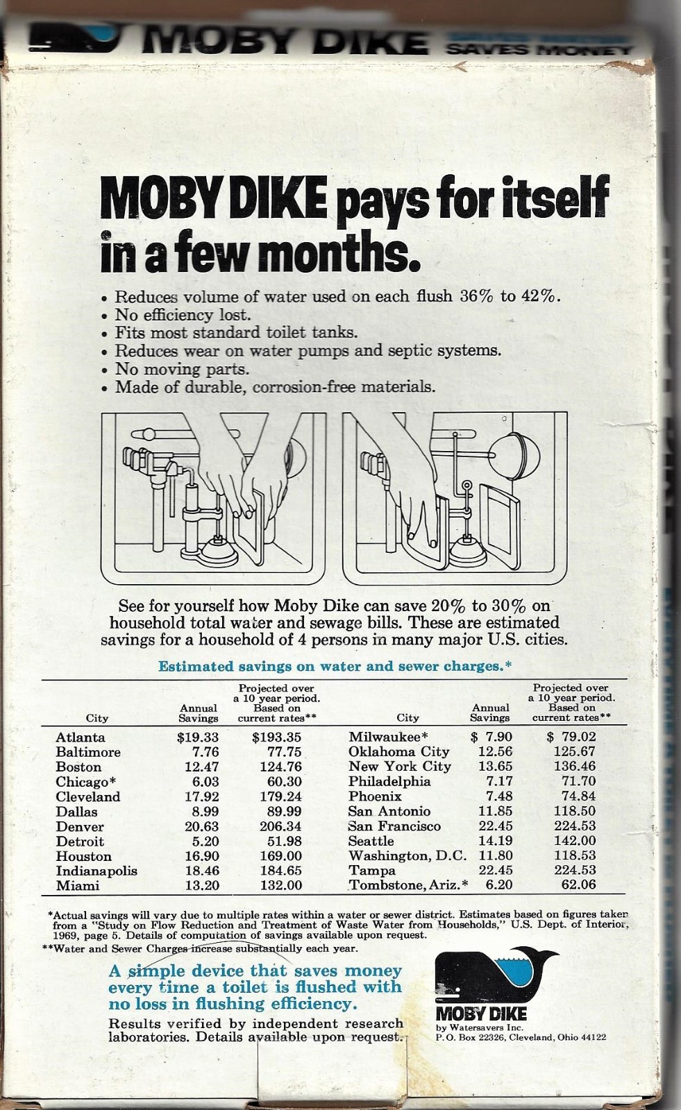 как выглядит 5 MOBY DIKE DEVICES THAT SAVE MONEY WITH EVERY FLUSH 25 VALUE BRAND NEW фото