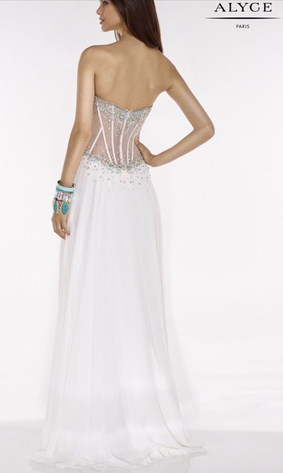 как выглядит NWT Alyce Paris 6511 Ivory multi illusion jeweled long formal evening PROM gown фото