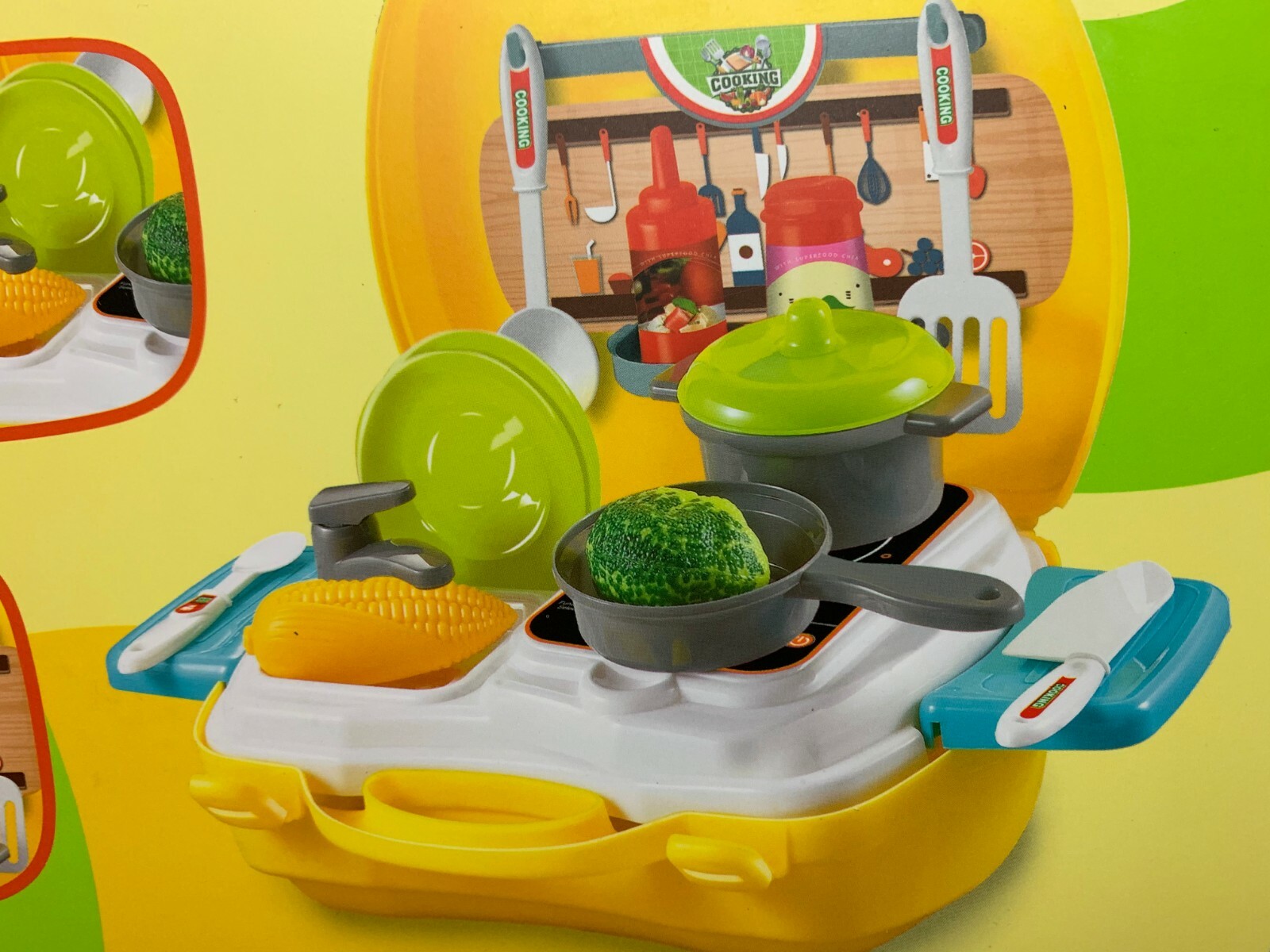как выглядит 25 PC PRETEND KITCHEN STOVE PLAYSET, COOKING ON THE GO NWT KIDS POTS PANS фото