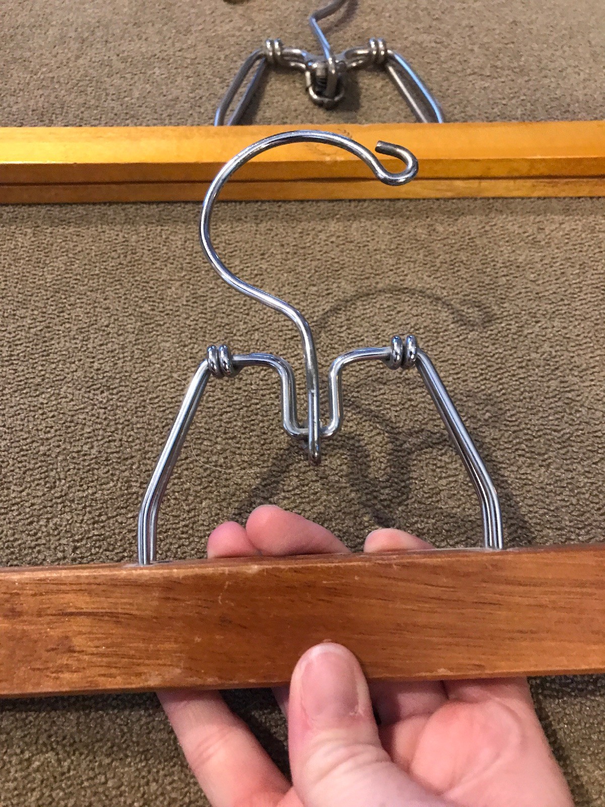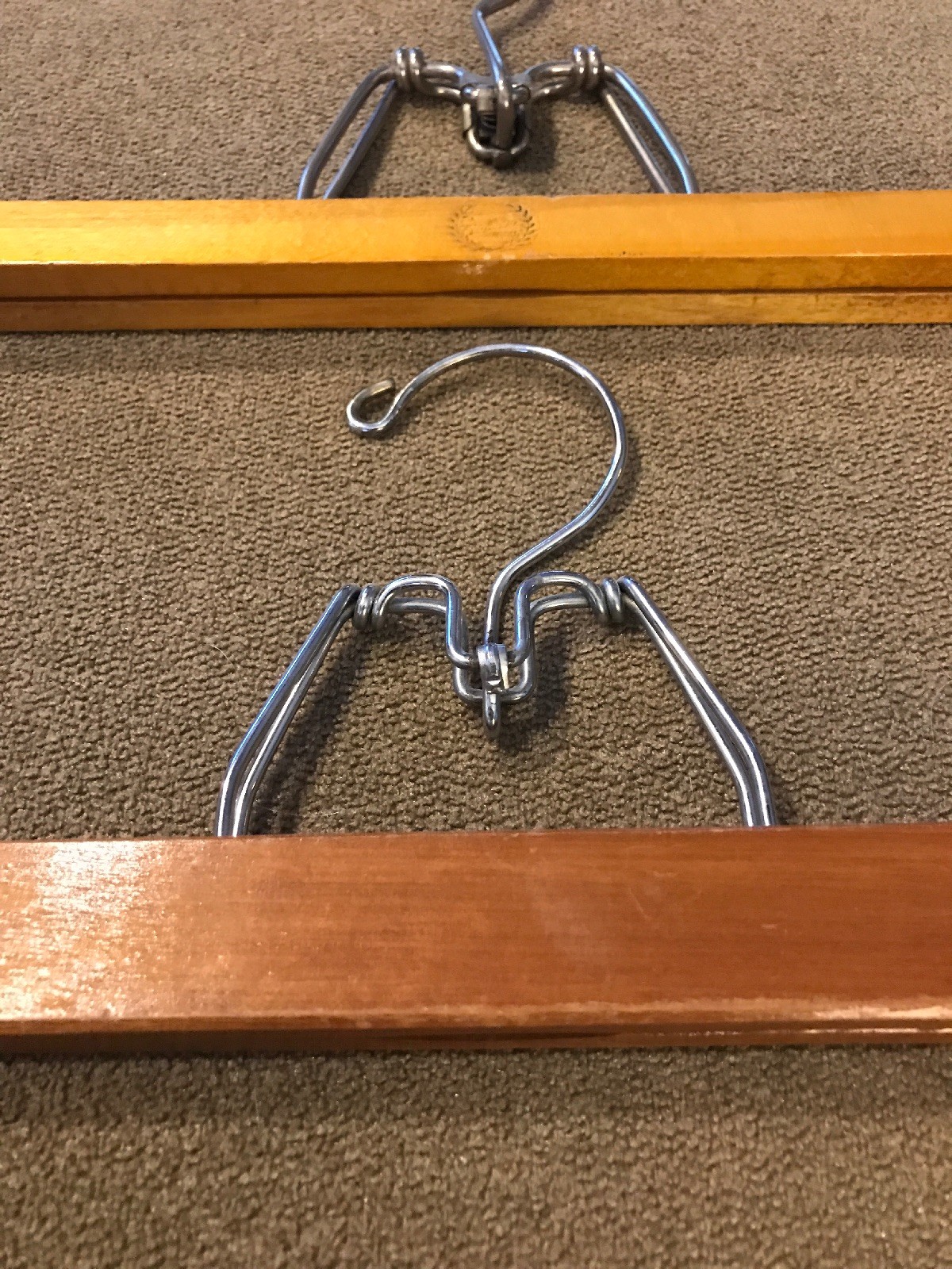 как выглядит Lot Of 2 Vintage Wooden Trouser Pants Clamp Hangers JL фото