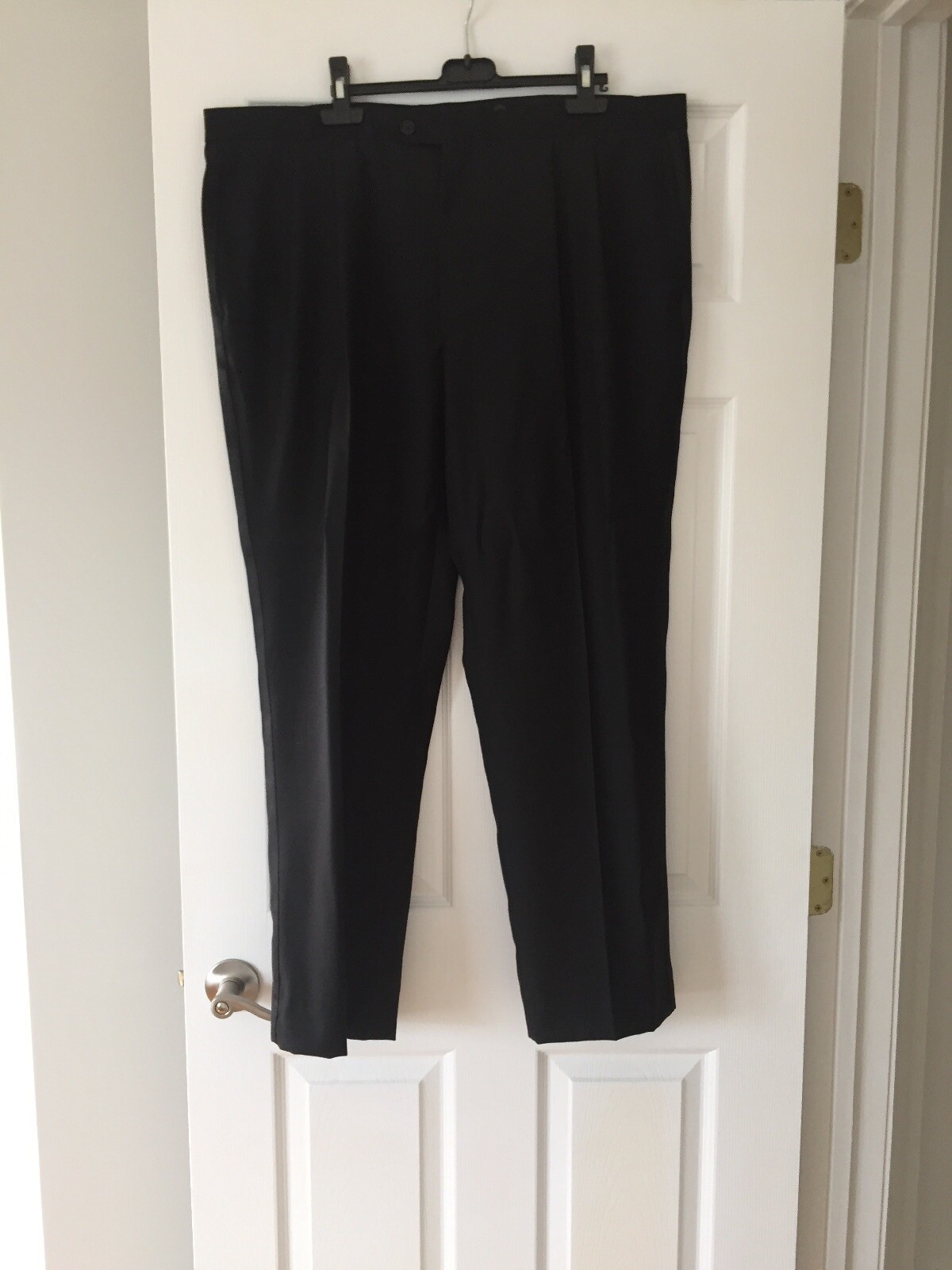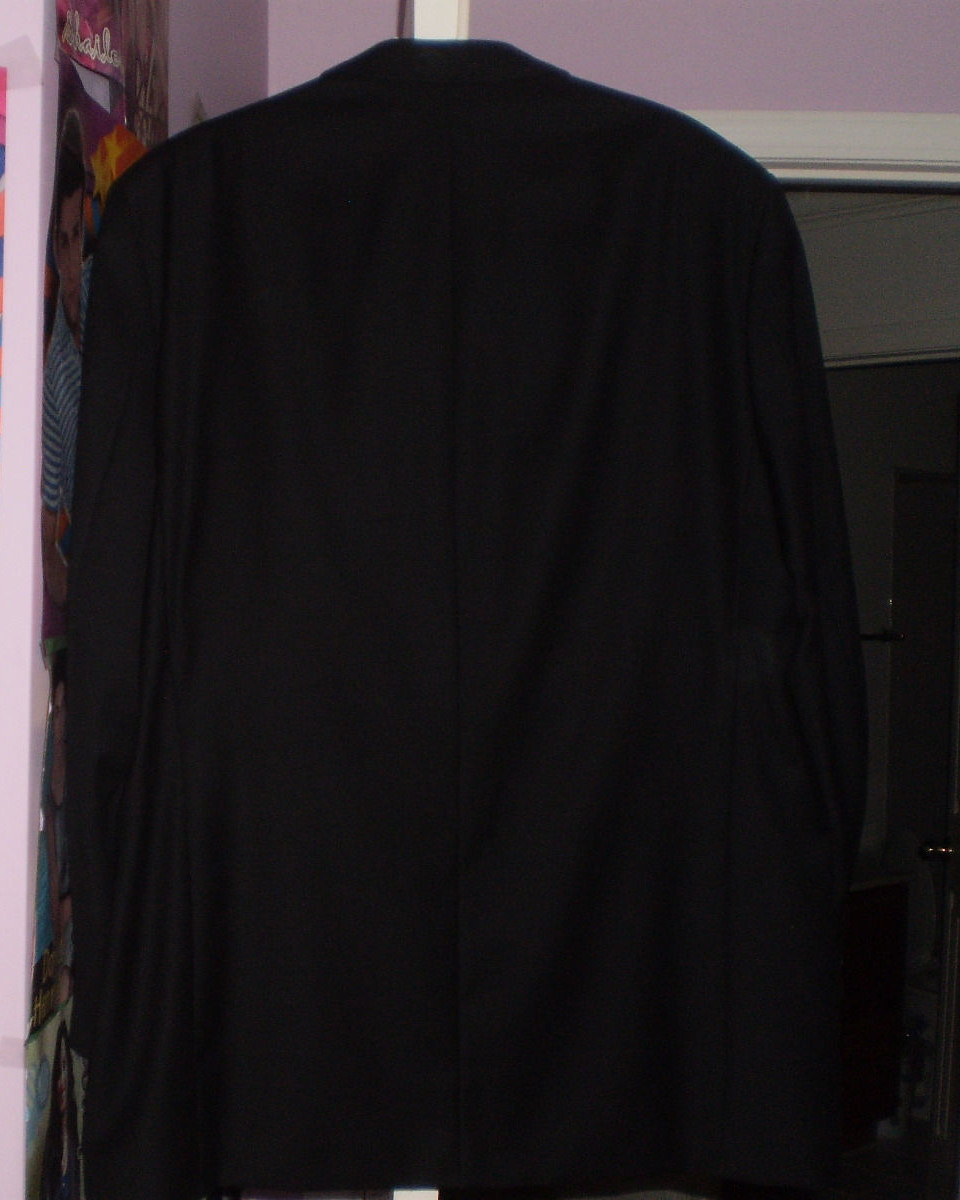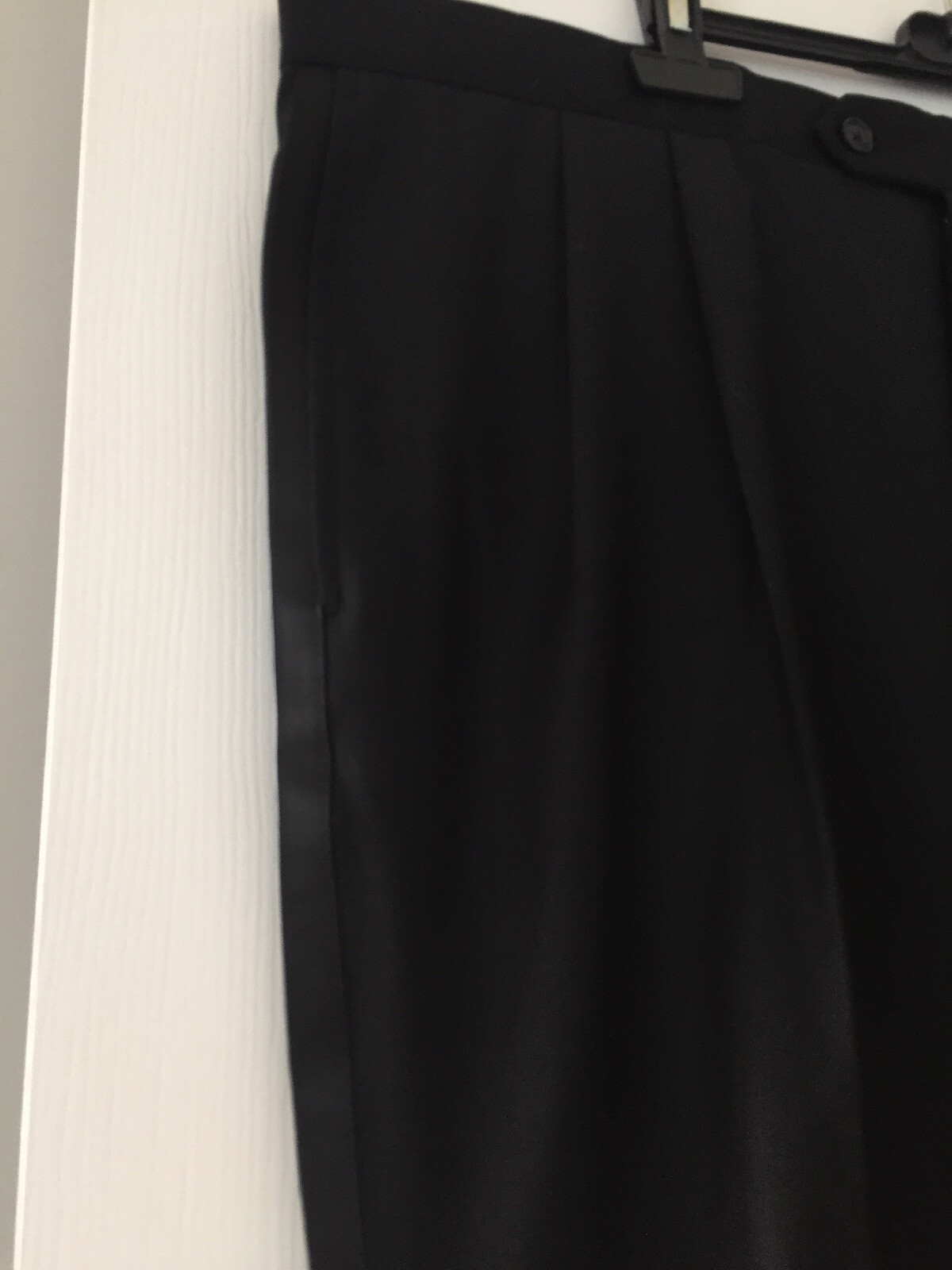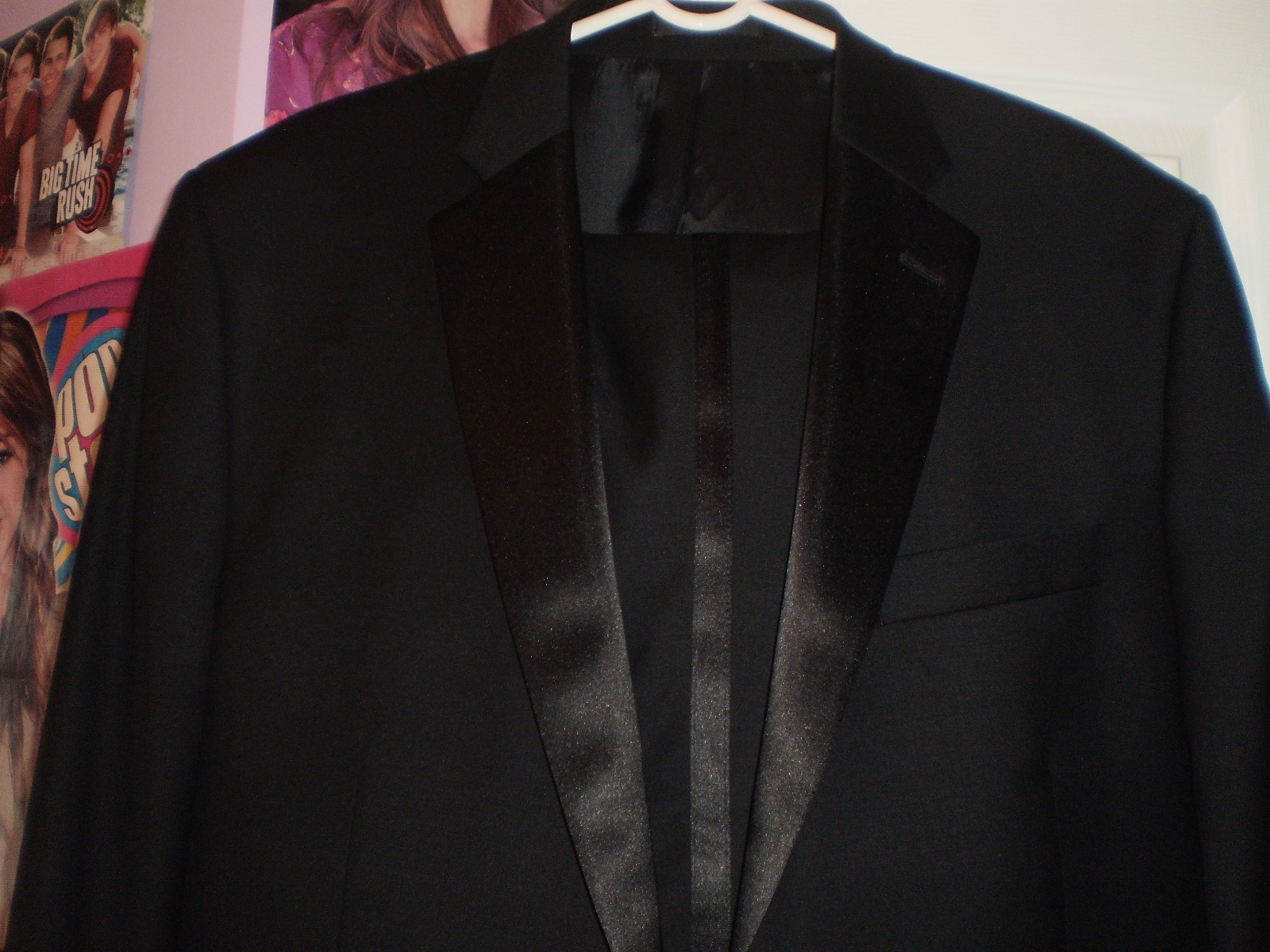 как выглядит 2-BUTTON SOLID BLACK SLIM FIT TUXEDO SUIT Size 46L фото