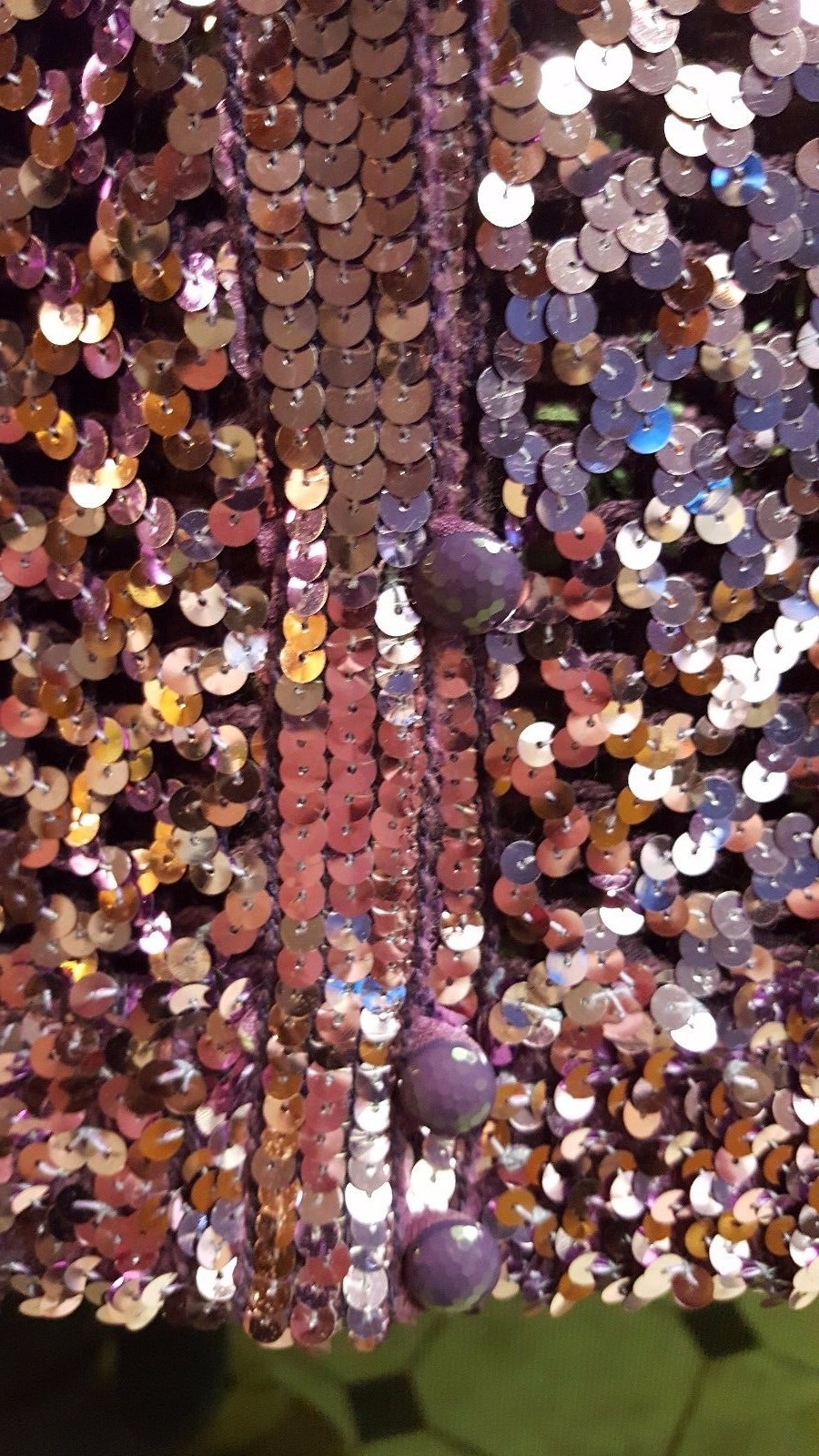 как выглядит Vntg Dressy Sweater Jacket TONS MAUVE or LAVENDER SEQUINS - See Through Weave Sm фото