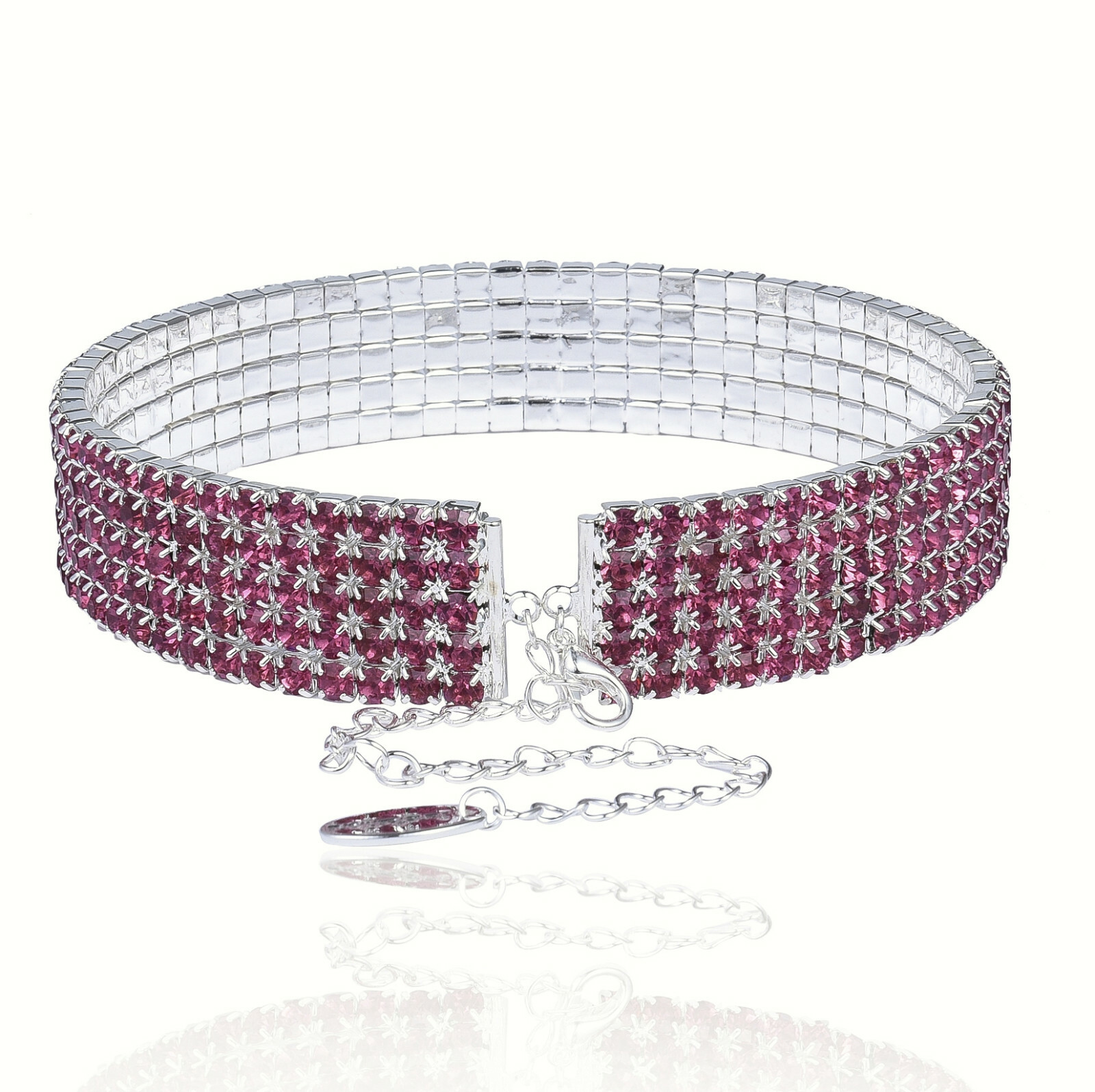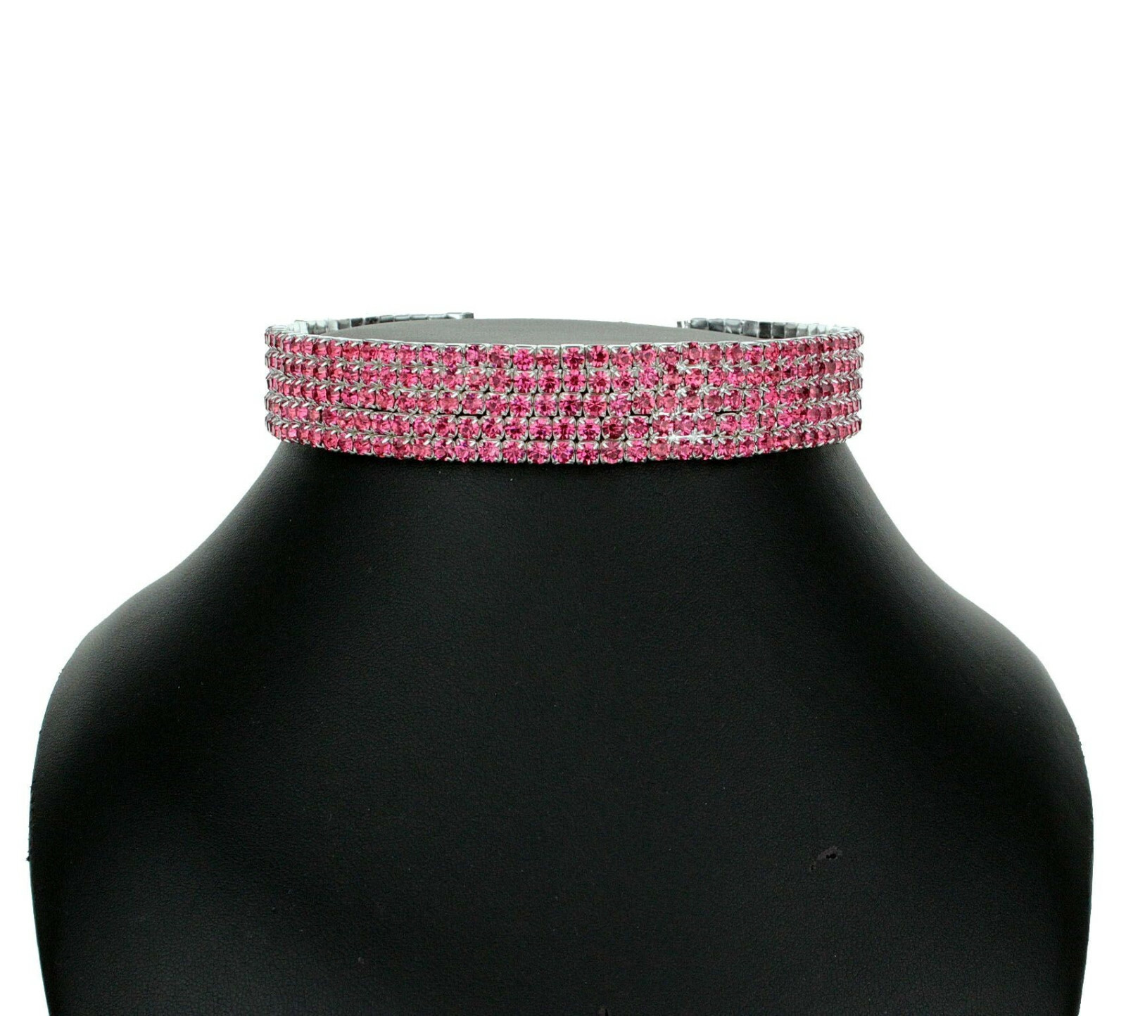 как выглядит FIVE-ROW 5-ROW PINK AUSTRIAN CRYSTAL RHINESTONE CHOKER NECKLACE PARTY N060P фото