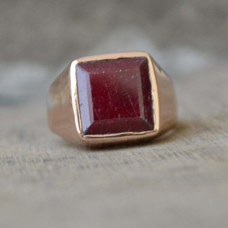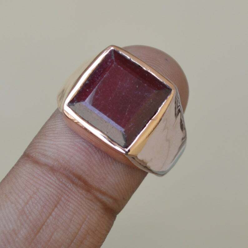 925 Sterling Silver Rose Gold Plated Ring, Square Ruby Gemstone Gift Ring