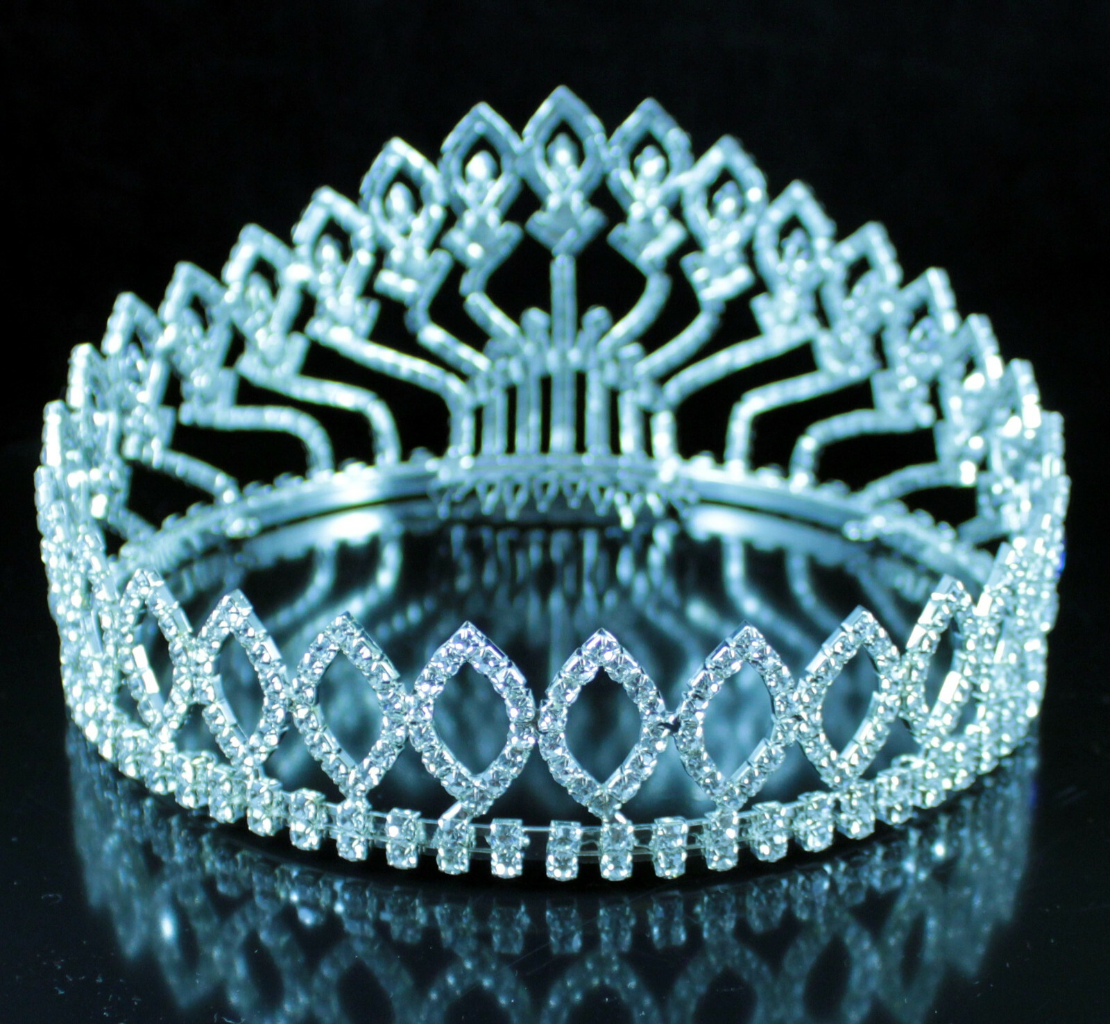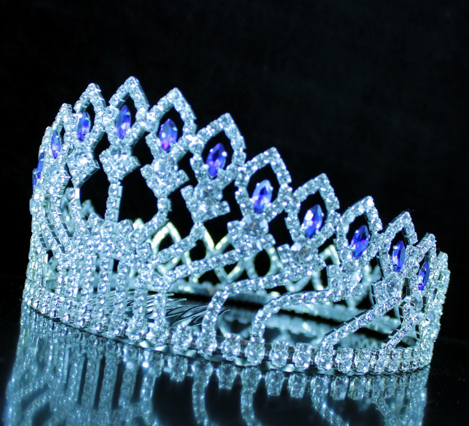 Floral Full Crown Blue Austrian Rhinestone Crystal Tiara Hiar Comb Large T1406B