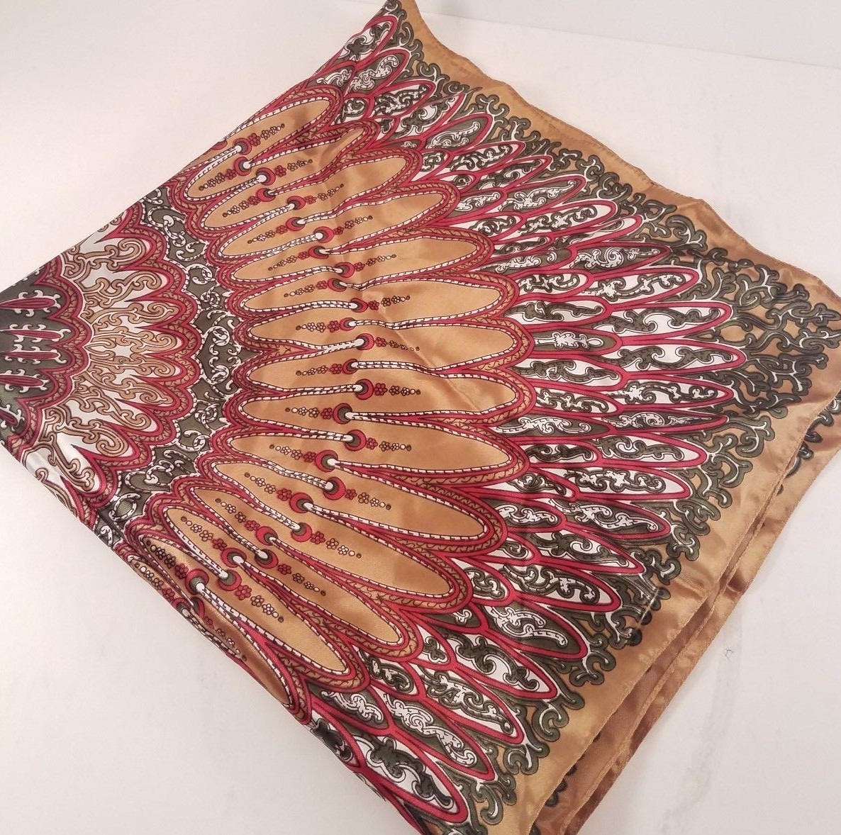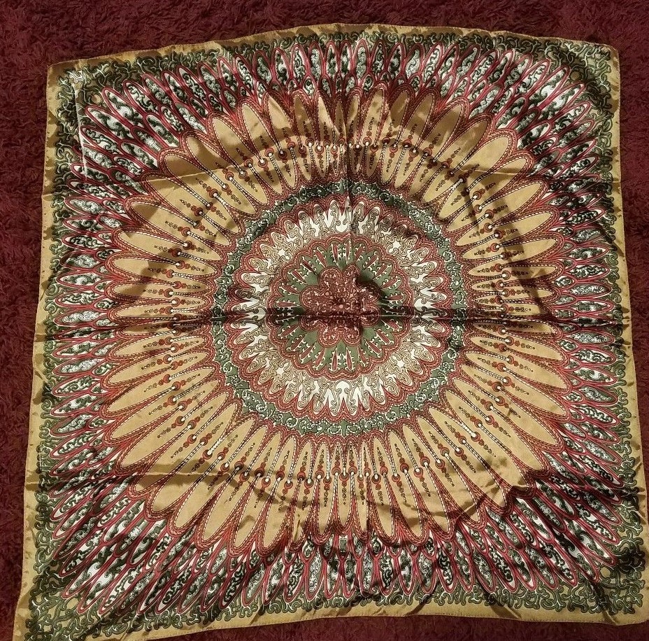 Vintage 100 Satin Acetate Gold, Red Green Scarf, Made in Italy