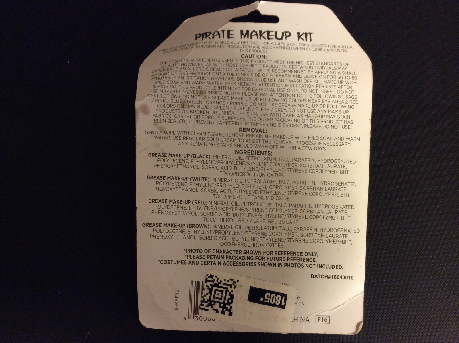 Pirate Eye Patch and Cosmetic Grease Makeup for Halloween Costume