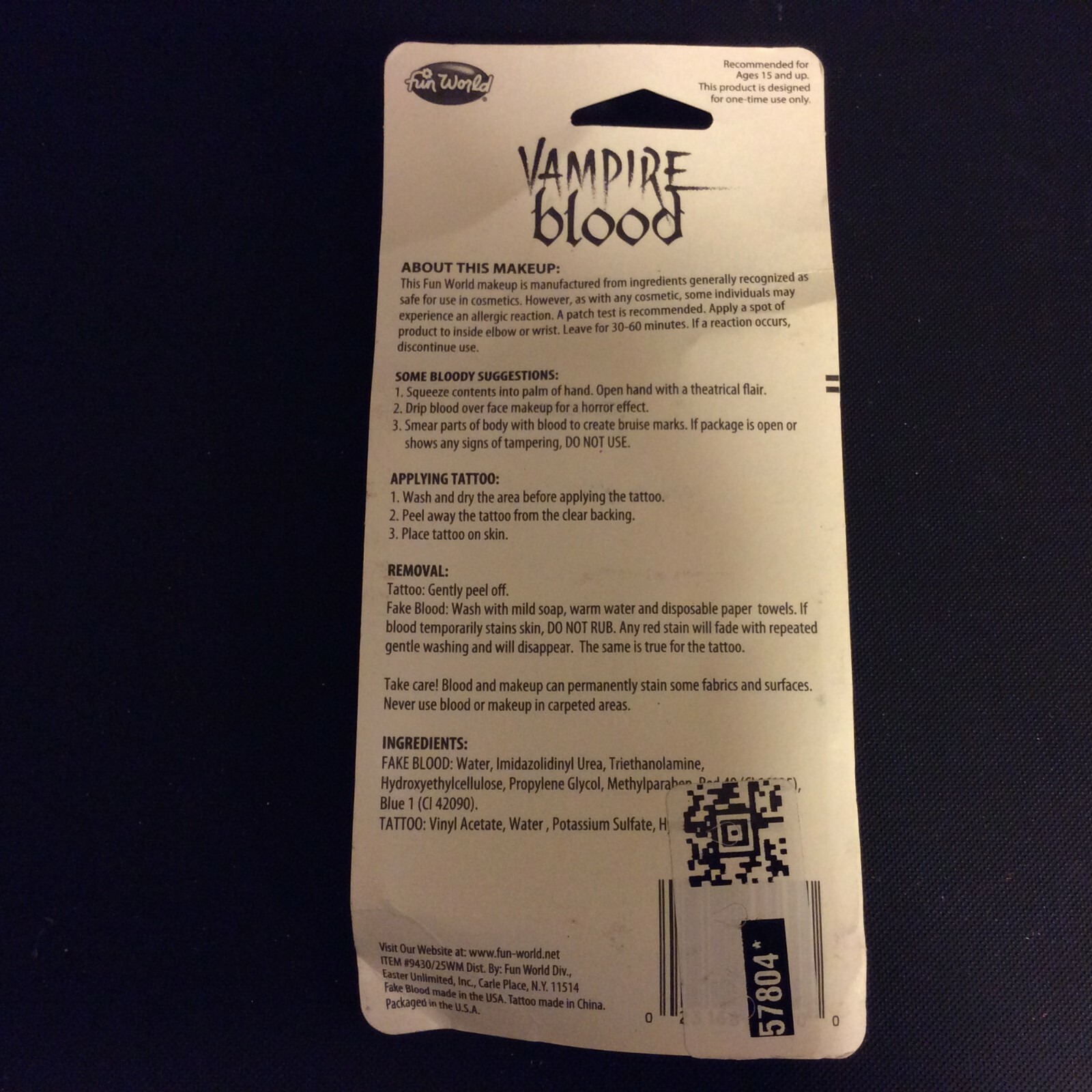 Vampire Blood and 3 Tattoos for Halloween Costume 1 fl oz Fun World Makeup