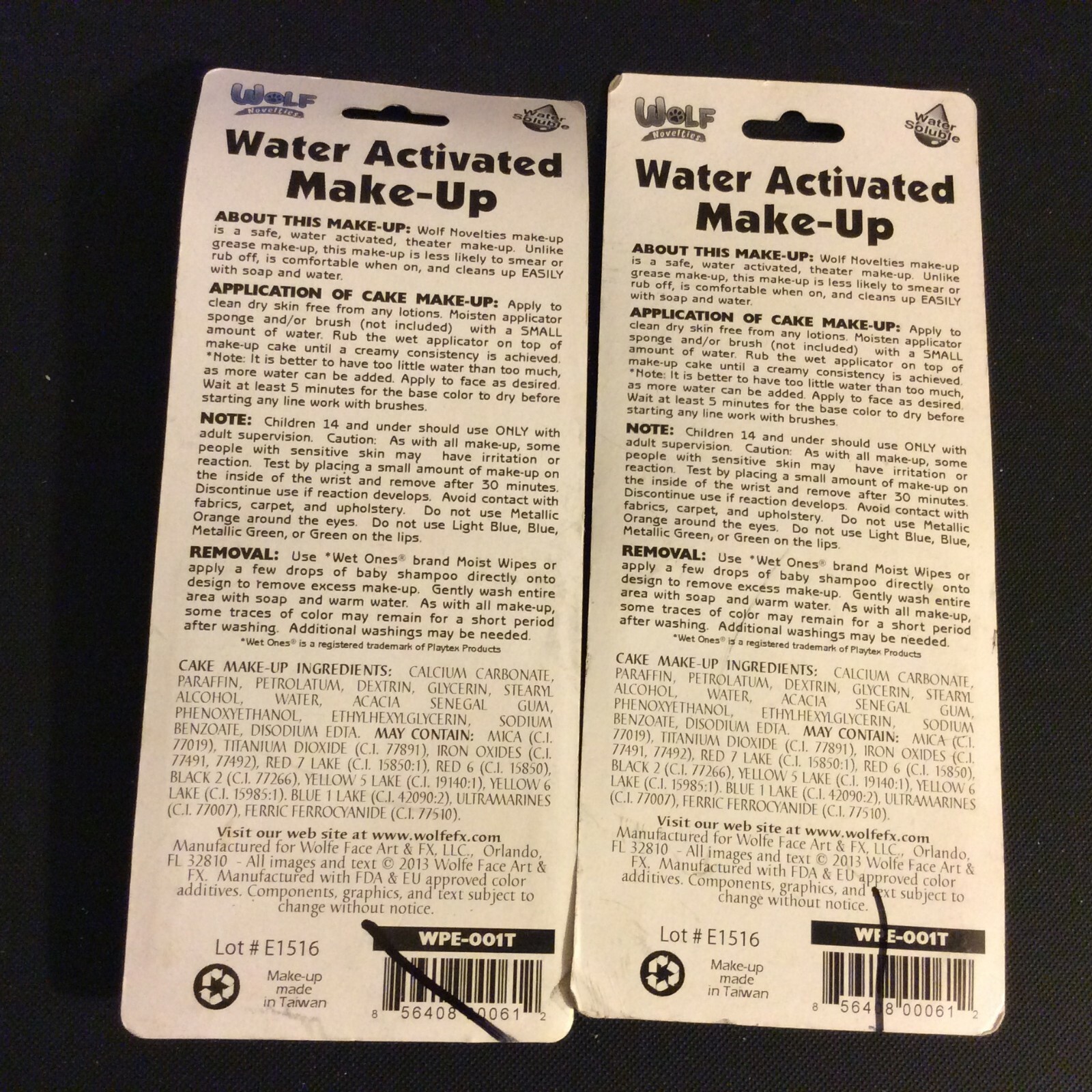 Lot of 2 Water Activated White Cream Stage Makeup Halloween Costume Makeup