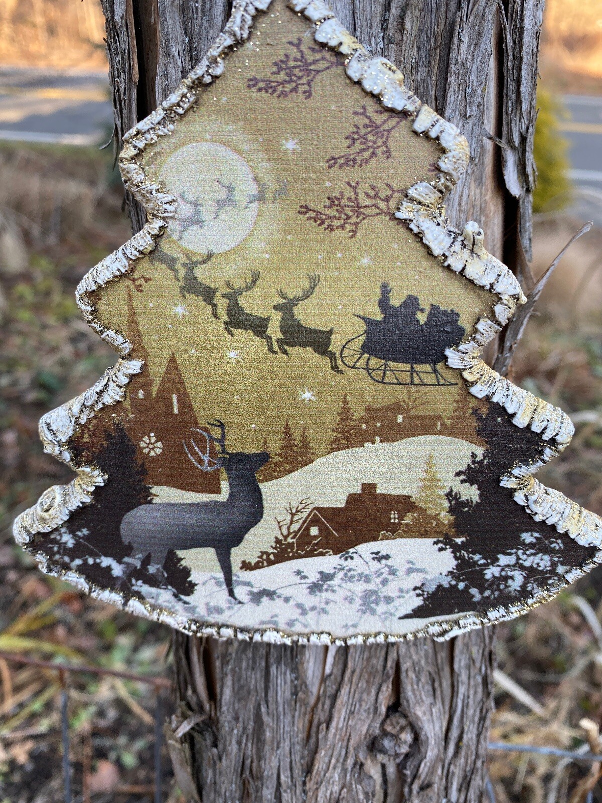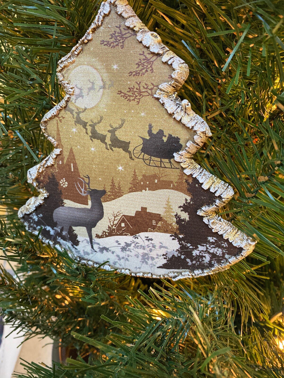 как выглядит New Kurt Adler 5.75" Winter Woods White-Gold Santa/Deer Tree Christmas Ornament фото