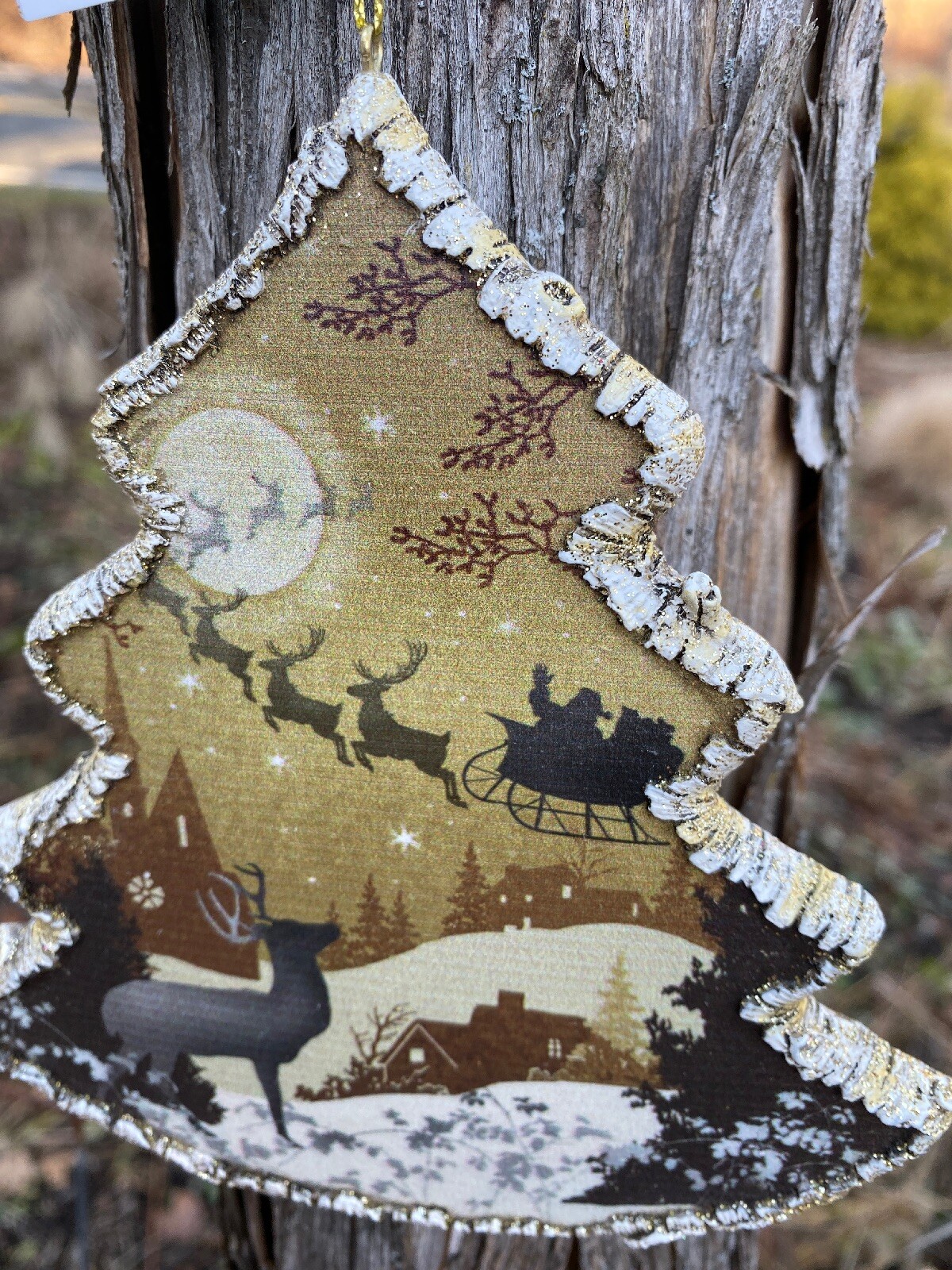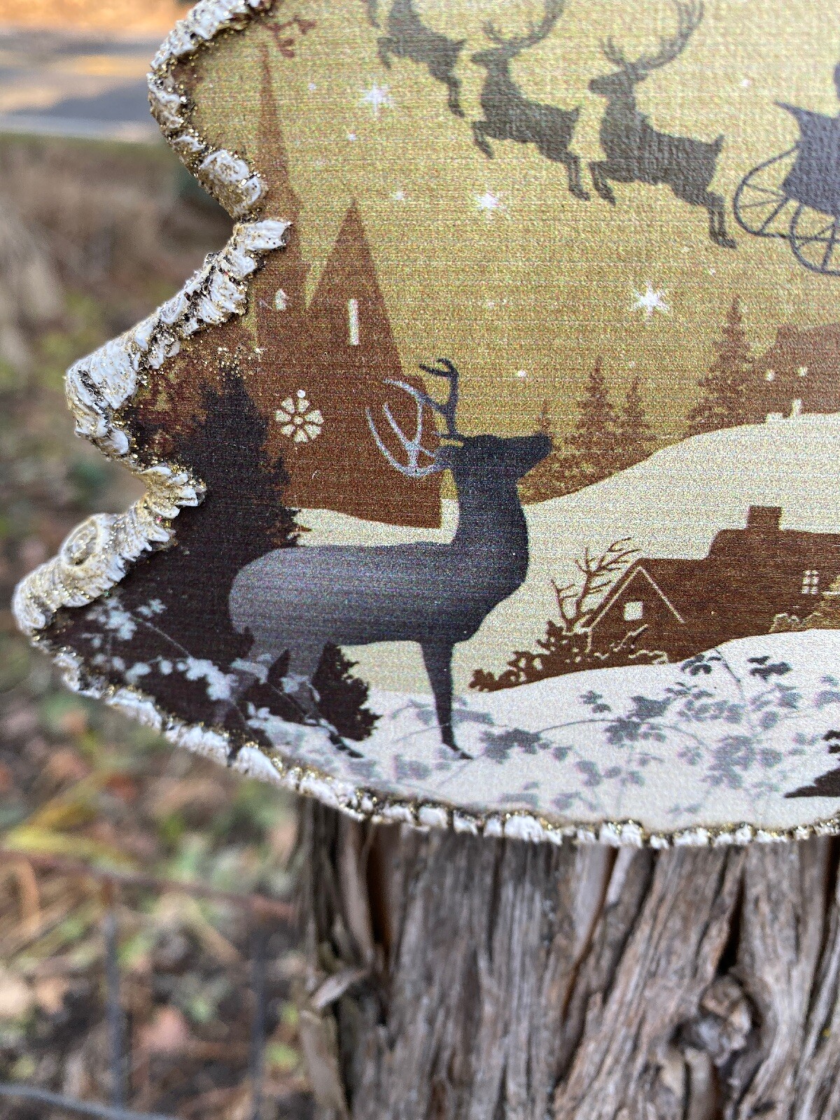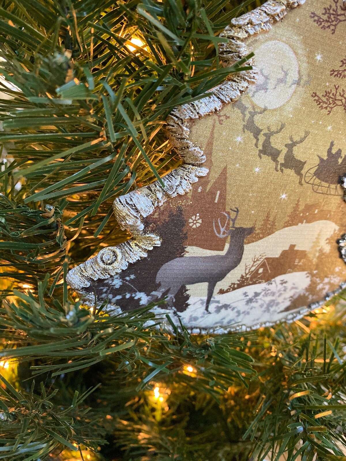 New Kurt Adler 5.75 Winter Woods White-Gold Santa/Deer Tree Christmas Ornament