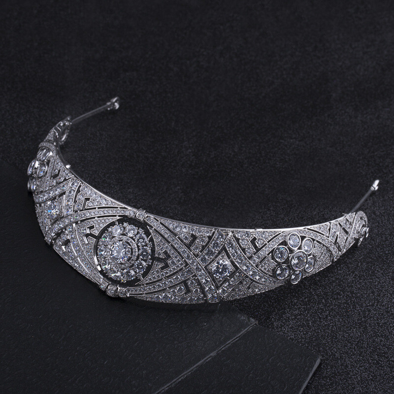 Luxury All CZ Meghan Wedding Queen Mary Bandeau Tiara Crown Cubic Zirconia