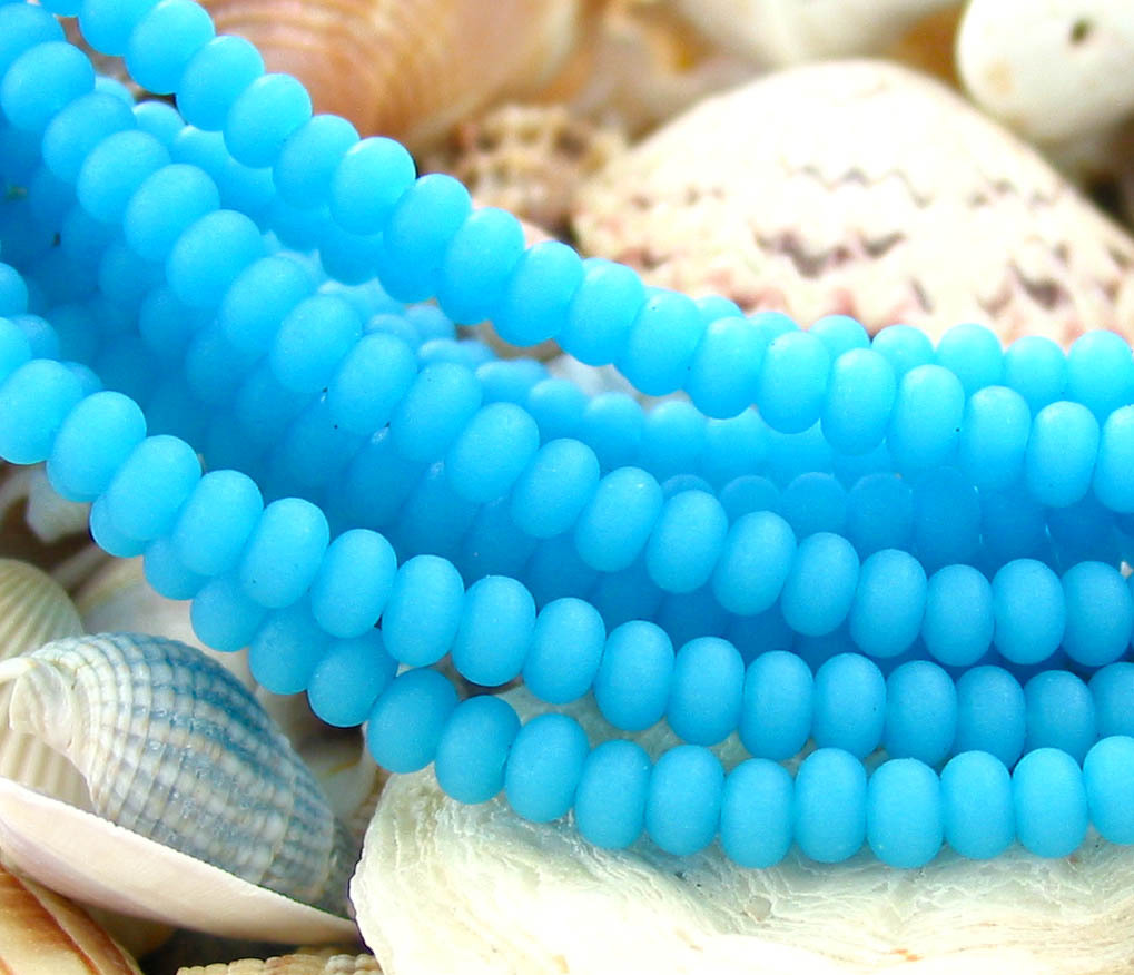 PICK COLOR 8 4mm small rondelle sea beach glass beads frosted recycled matte