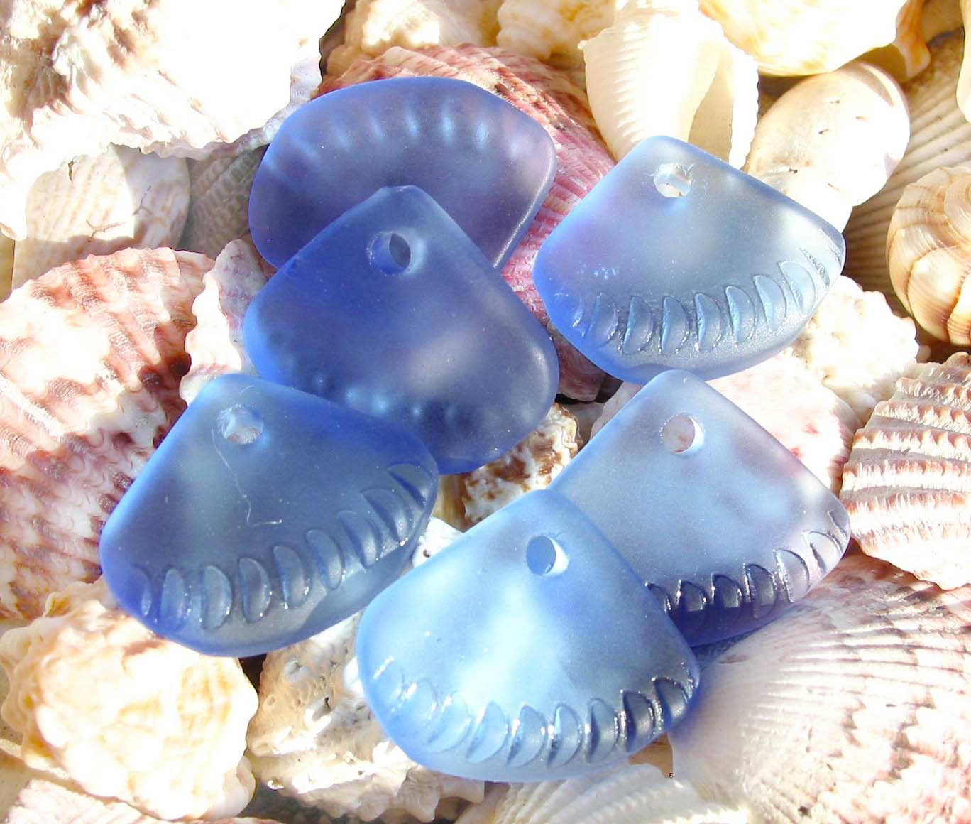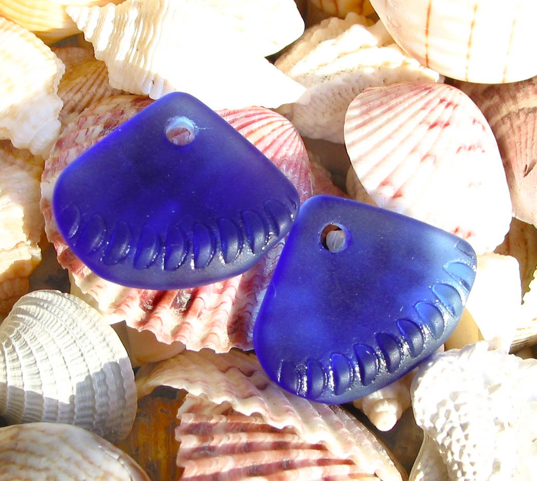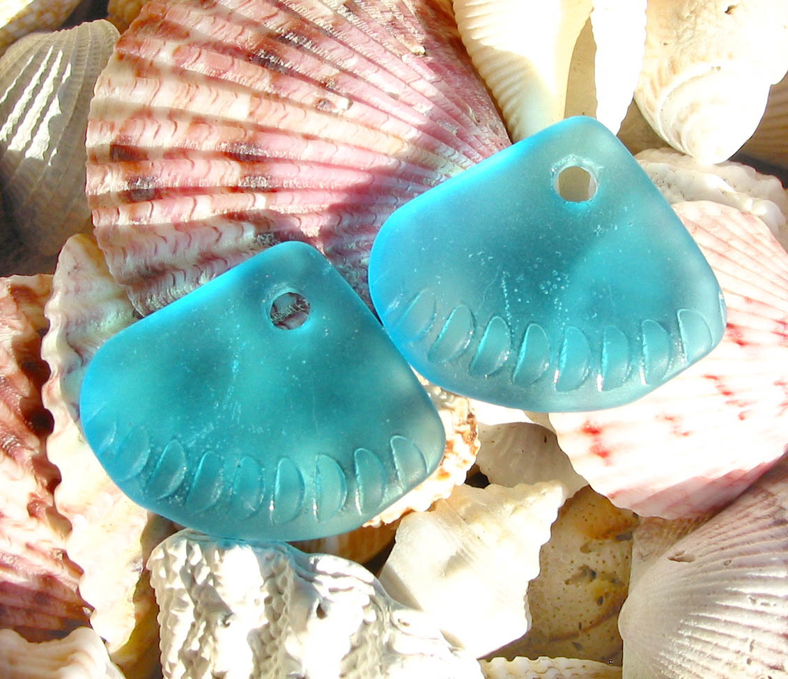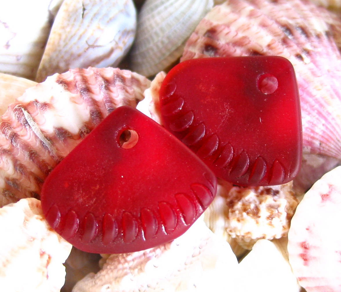 Random MIX 8pcs 24mm sea beach glass pendant beads triangle fan frosted recycled