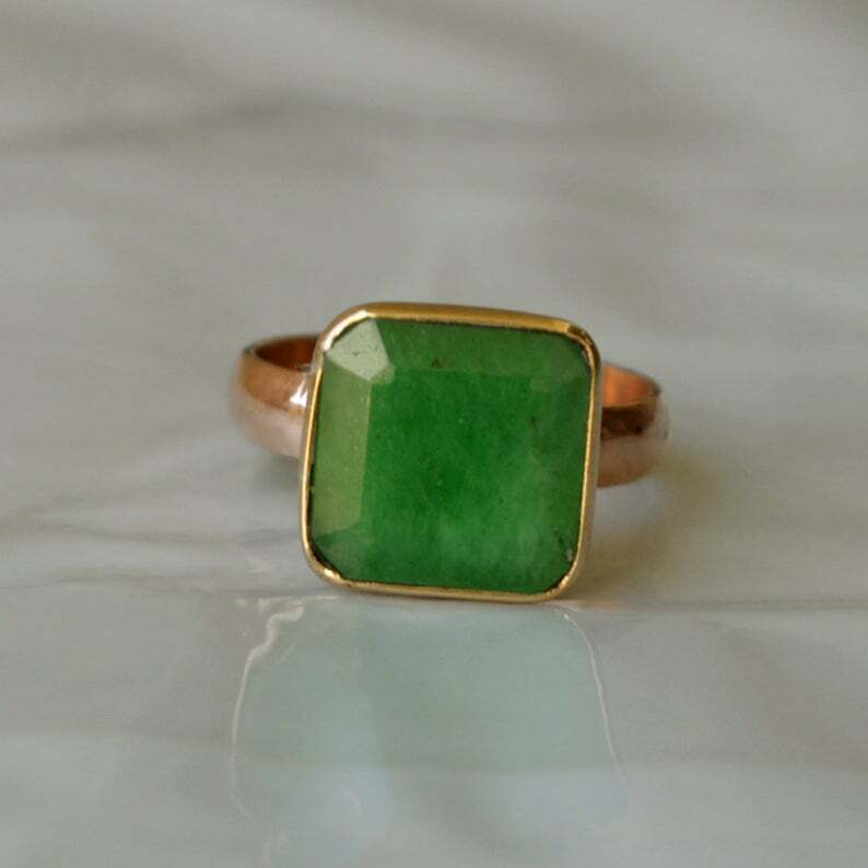 925 Sterling Silver Rose Gold Plated Genuine Green Emerald Handmade Gift Ring