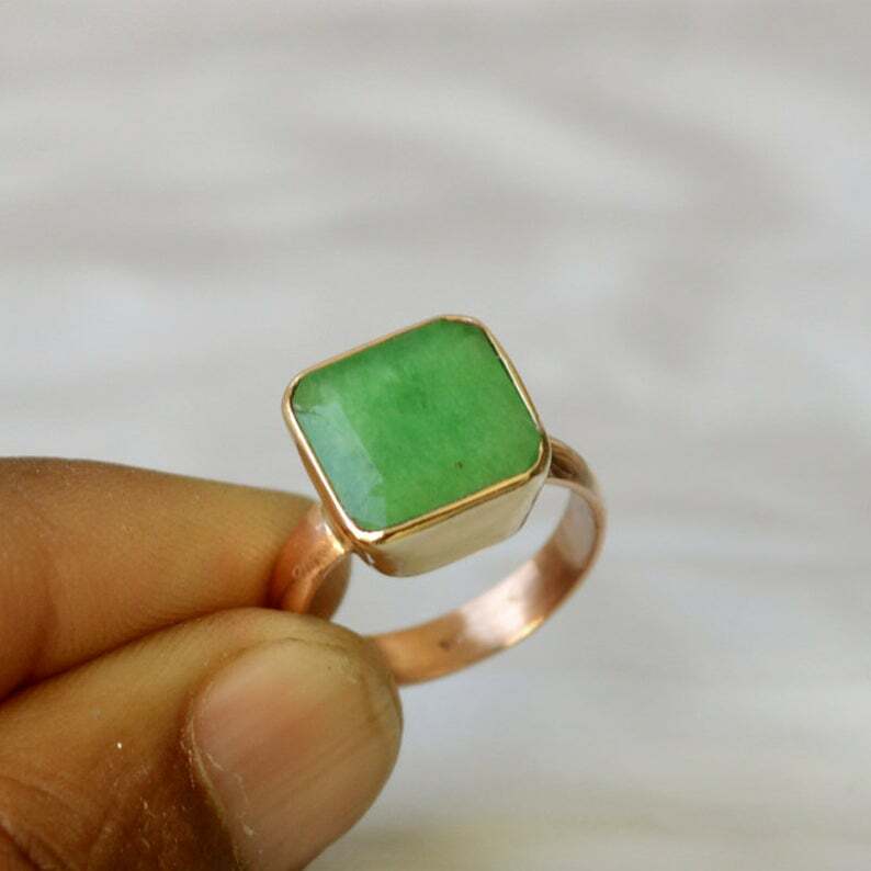 как выглядит 925 Sterling Silver Rose Gold Plated Genuine Green Emerald Handmade Gift Ring фото