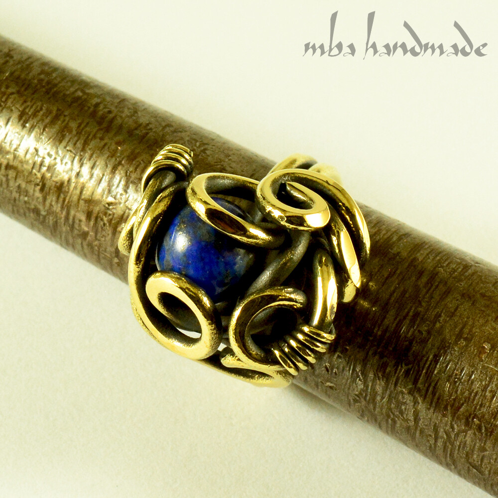 как выглядит Lapis Lazuli Crystal Size 9 Ring Brass Wire Wrapped Gemstone Artisan Jewelry фото